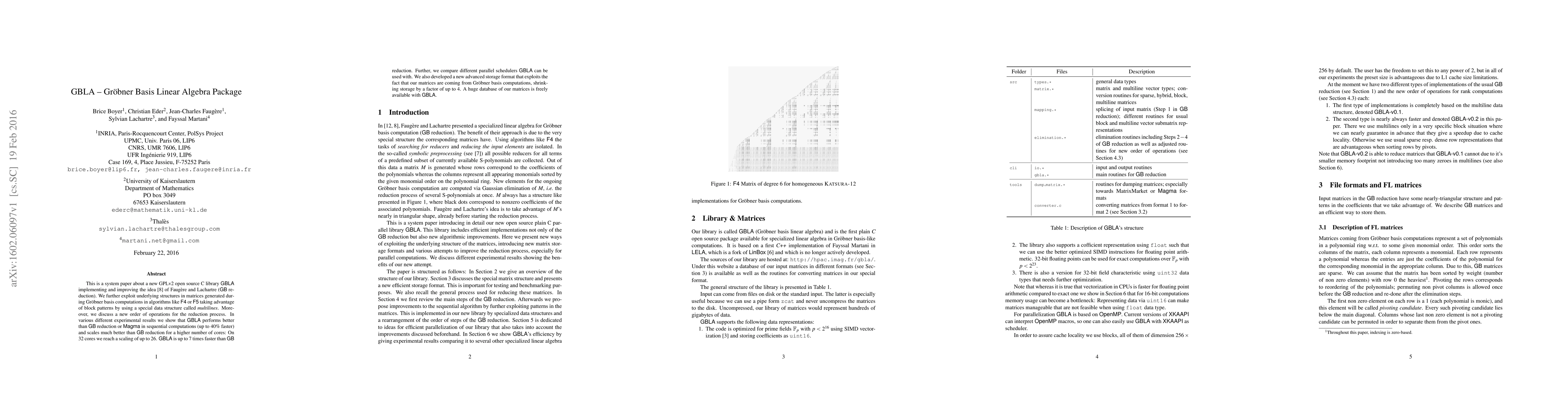 This is a system paper about a new GPLv2 open source C library GBLA implementing and improving the idea of Faug\`ere and Lachartre (GB reduction). We further exploit underlying structures in matrices generated during Gr\"obner basis computations in algorithms like F4 or F5 taking advantage of block patterns by using a special data structure called multilines. Moreover, we discuss a new order of operations for the reduction process. In various different experimental results we show that GBLA performs better than GB reduction or Magma in sequential computations (up to 40% faster) and scales much better than GB reduction for a higher number of cores: On 32 cores we reach a scaling of up to 26. GBLA is up to 7 times faster than GB reduction. Further, we compare different parallel schedulers GBLA can be used with. We also developed a new advanced storage format that exploits the fact that our matrices are coming from Gr\"obner basis computations, shrinking storage by a factor of up to 4. A huge database of our matrices is freely available with GBLA.