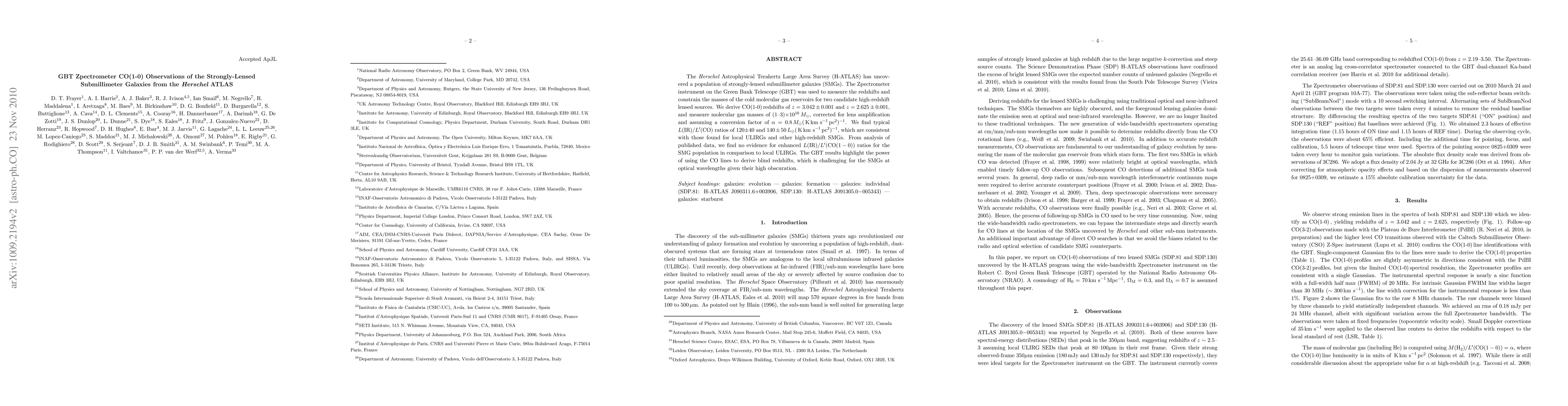 The Herschel Astrophysical Terahertz Large Area Survey (H-ATLAS) has uncovered a population of strongly-lensed submillimeter galaxies (SMGs). The Zpectrometer instrument on the Green Bank Telescope (GBT) was used to measure the redshifts and constrain the masses of the cold molecular gas reservoirs for two candidate high-redshift lensed sources. We derive CO(1-0) redshifts of z=3.042+/-0.001 and z=2.625+/-0.001, and measure molecular gas masses of (1--3)x10^{10}Msun, corrected for lens amplification and assuming a conversion factor of alhpa=0.8 Msun(K km/s pc^2)^{-1}. We find typical L(IR)/L'(CO) ratios of 120+/-40 and 140+/-50 Lsun (K km/s pc^2)^{-1}, which are consistent with those found for local ULIRGs and other high-redshift SMGs. From analysis of published data, we find no evidence for enhanced L(IR)/L'(CO(1-0)) ratios for the SMG population in comparison to local ULIRGs. The GBT results highlight the power of using the CO lines to derive blind redshifts, which is challenging for the SMG population at optical wavelengths given their high obscuration.