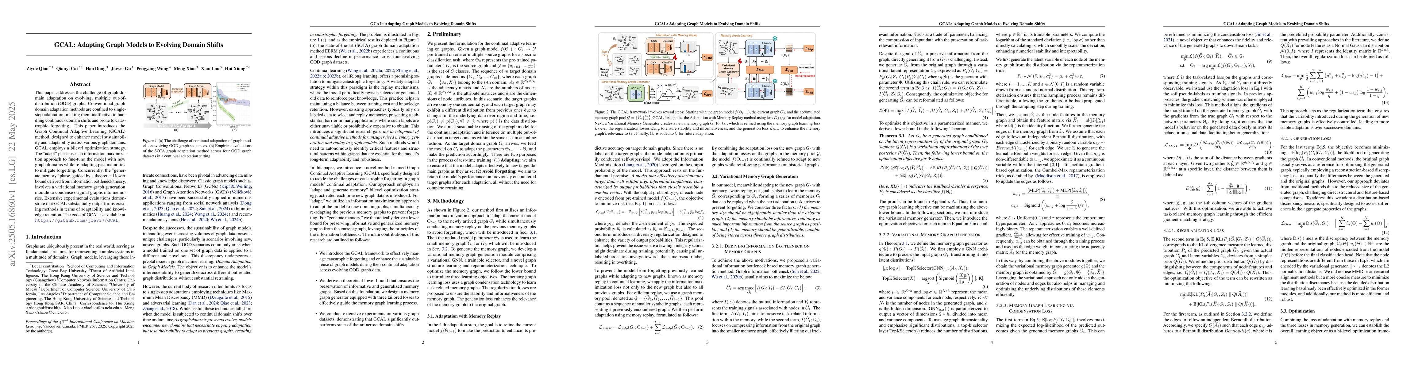 The research introduces Graph Continual Adaptive Learning (GCAL), a bilevel optimization strategy for graph domain adaptation. The 'adapt' phase uses information maximization to fine-tune the model with new graph domains while re-adapting past memories. The 'generate memory' phase, guided by an information bottleneck theory-derived lower bound, employs a variational memory graph generation module to condense original graphs into memories.