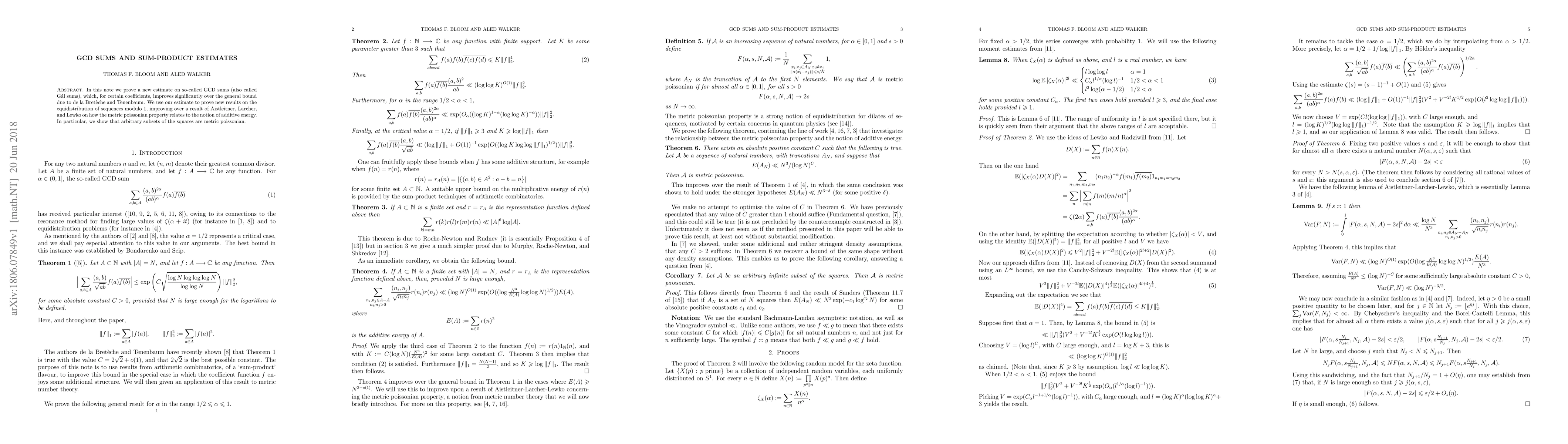 In this note we prove a new estimate on so-called GCD sums (also called G\'{a}l sums), which, for certain coefficients, improves significantly over the general bound due to de la Bret\`{e}che and Tenenbaum. We use our estimate to prove new results on the equidistribution of sequences modulo 1, improving over a result of Aistleitner, Larcher, and Lewko on how the metric poissonian property relates to the notion of additive energy. In particular, we show that arbitrary subsets of the squares are metric poissonian.