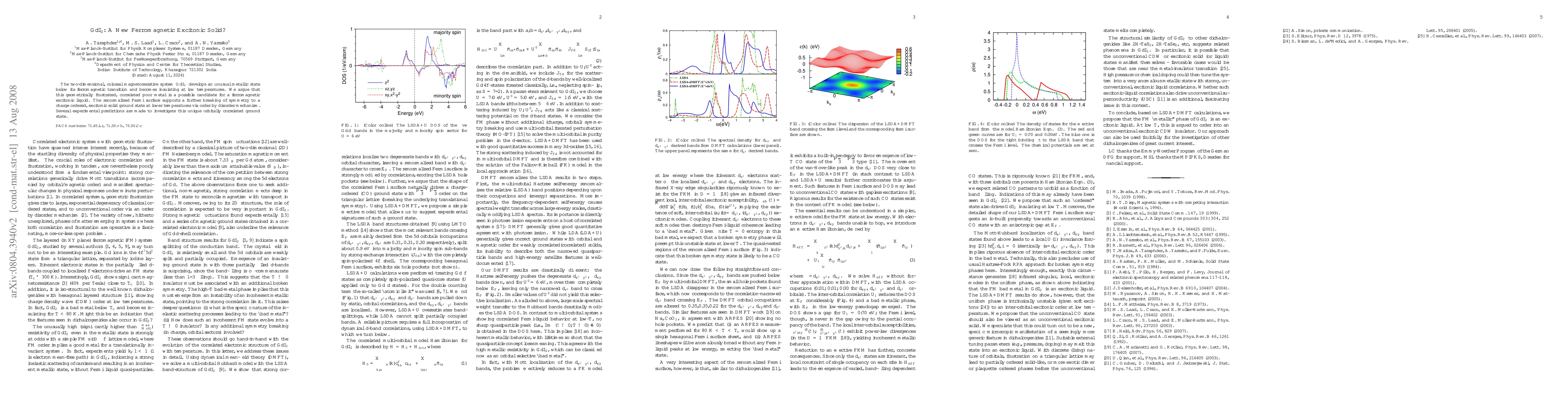 GdI_2 exhibits a metallic state below its ferromagnetic transition and becomes insulating at low temperatures, leading to the proposal of a ferromagnetic excitonic liquid ground state with a charge-ordered, excitonic solid.