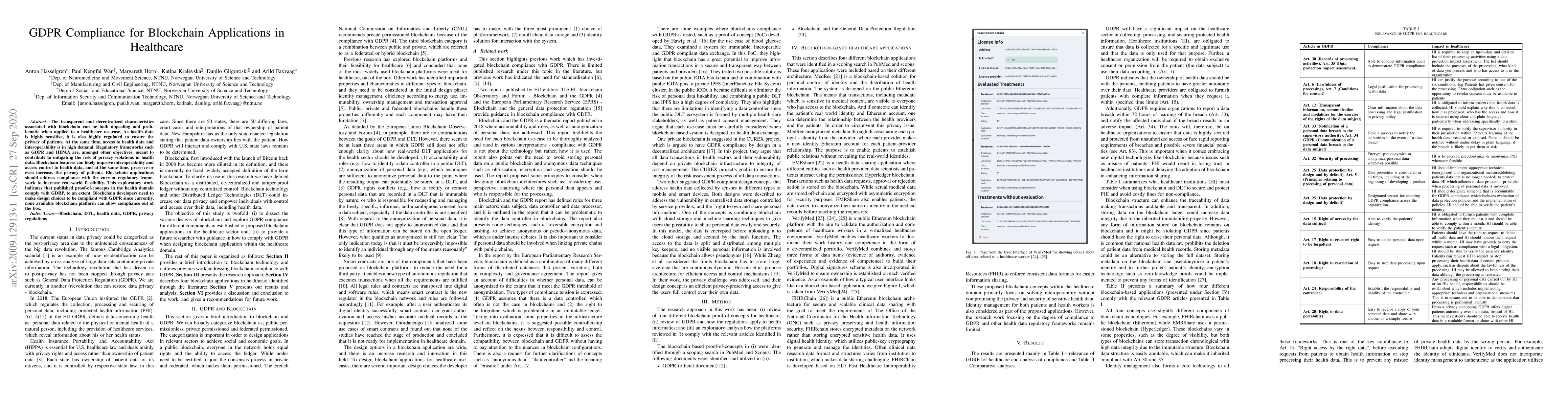 This paper contributes to understanding how blockchain technology can be utilized in healthcare applications while adhering to GDPR regulations, specifically focusing on identity management and data protection principles.