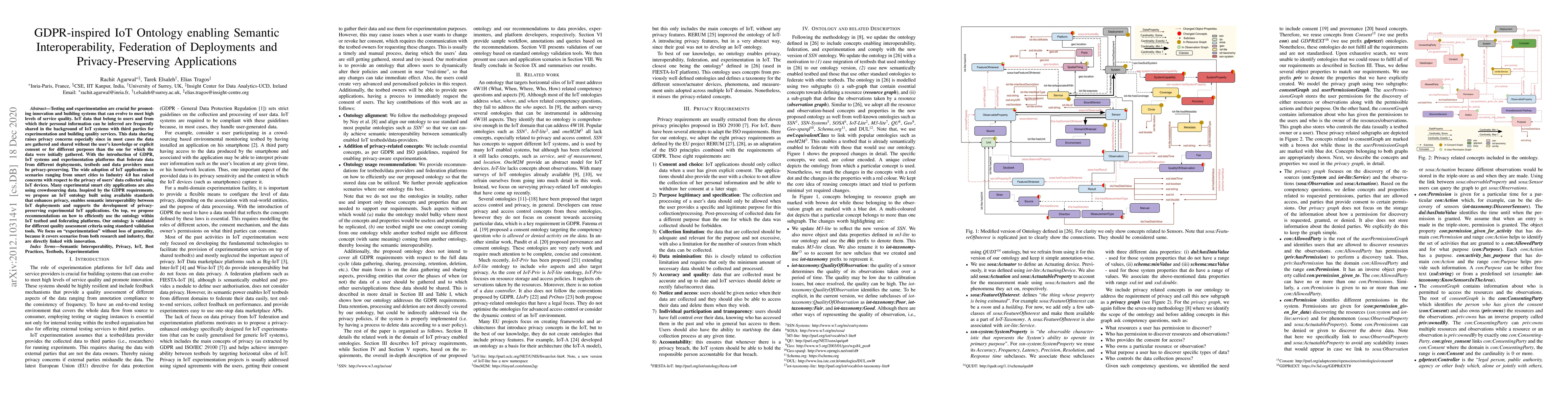 This paper proposes a GDPR-inspired IoT ontology to enhance privacy, enable semantic interoperability, and support privacy-preserving experimental applications. The ontology is validated for quality and aims to address privacy concerns in IoT data sharing across different deployments and testbeds.
