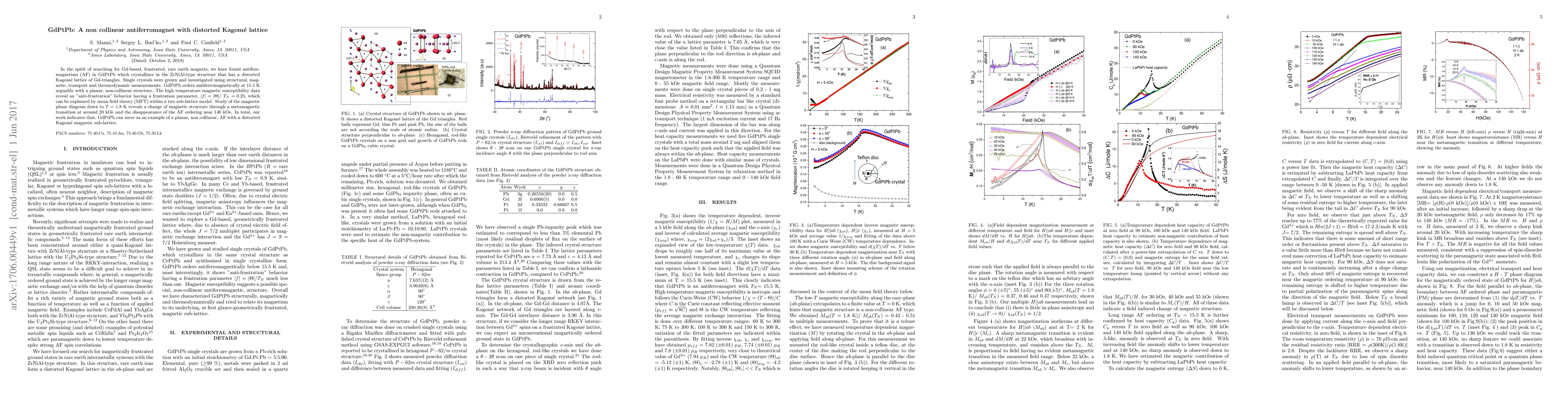 GdPtPb exhibits antiferromagnetism with a planar, non-collinear structure in a distorted Kagom\'e lattice, ordering at 15.5 K, and displaying metamagnetic transitions under applied magnetic fields. The material's magnetic susceptibility suggests an "anti-frustration" behavior explained by mean field theory.