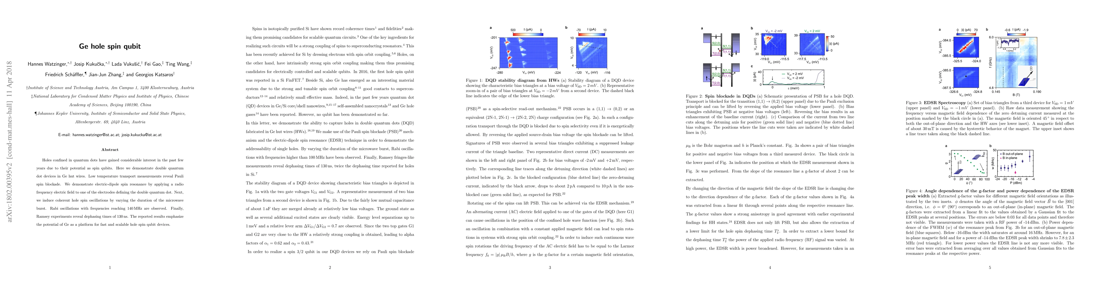 This paper demonstrates the use of holes in germanium (Ge) quantum dots as spin qubits, showing Pauli spin blockade and coherent spin oscillations via electric-dipole spin resonance and microwave control. The study highlights the potential of Ge for fast and scalable spin qubit applications.