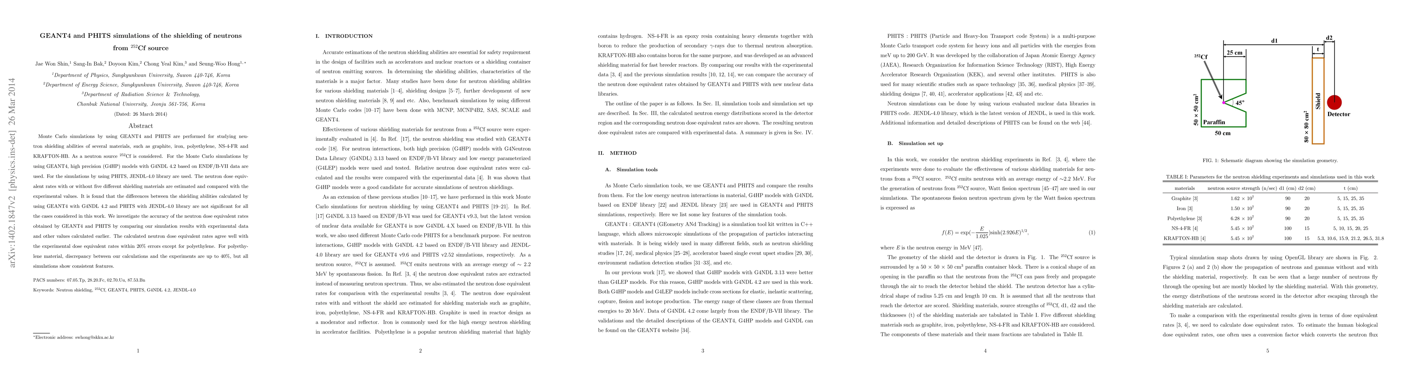 This paper compares neutron shielding simulations using GEANT4 and PHITS for a $^{252}$Cf neutron source, finding minimal differences in calculated neutron dose equivalent rates for materials like graphite, iron, and polyethylene. While simulations agree well with experimental data for most materials, discrepancies up to 40% are noted for polyethylene.