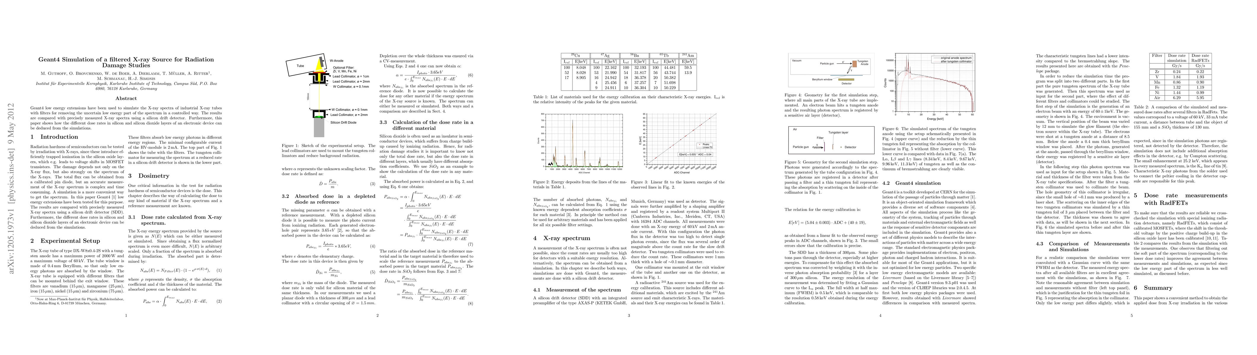 This paper uses Geant4 simulations to model filtered X-ray spectra from industrial X-ray tubes, comparing the results with measured spectra from a silicon drift detector. It also demonstrates how the simulations can determine varying dose rates in silicon and silicon dioxide layers of electronic devices.