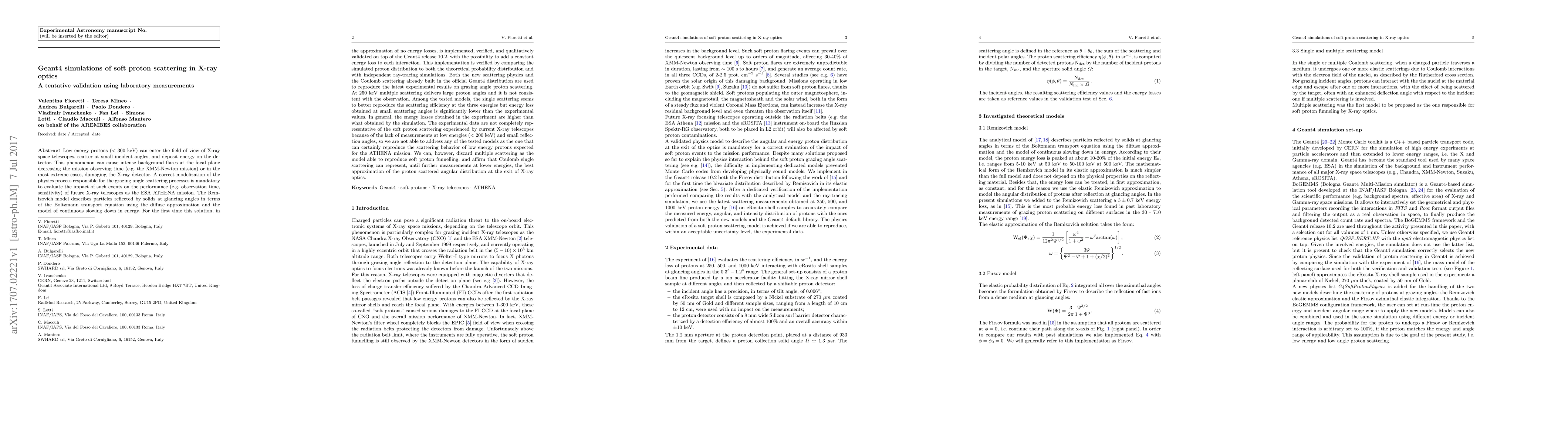 The research employs Geant4 simulations to model soft proton scattering in X-ray optics, implementing the Remizovich model for comparison with experimental data from laboratory measurements.