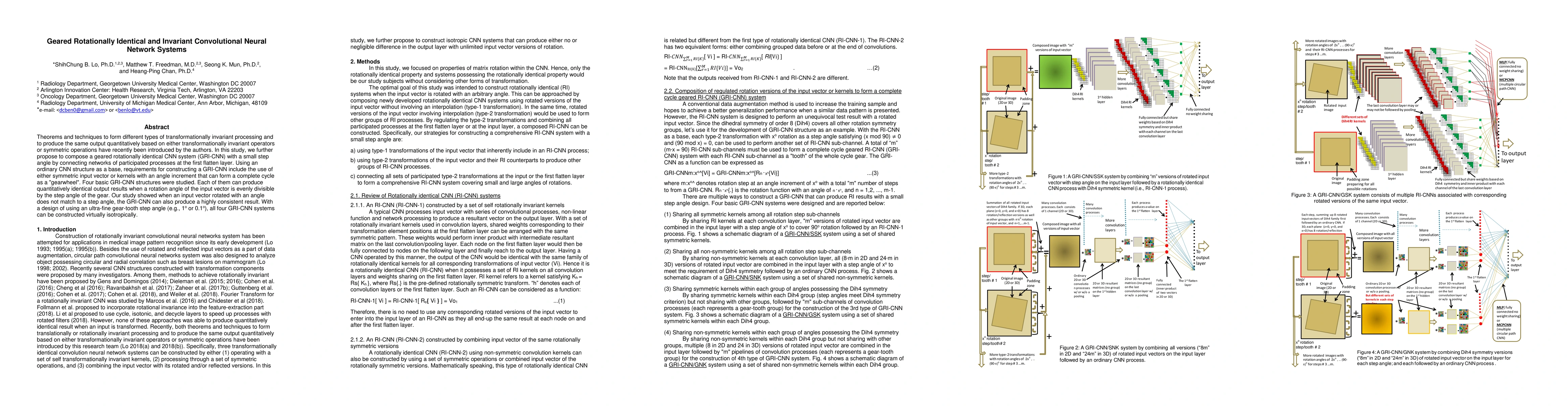 This research introduces a geared rotationally identical convolutional neural network (GRI-CNN) system, which utilizes small step angles to achieve transformationally invariant processing. The study proposes four basic GRI-CNN structures that can produce consistent output results even when input vectors are rotated by angles that don't perfectly match the step angle, demonstrating near-isotropic construction with fine-grained gear-tooth steps.