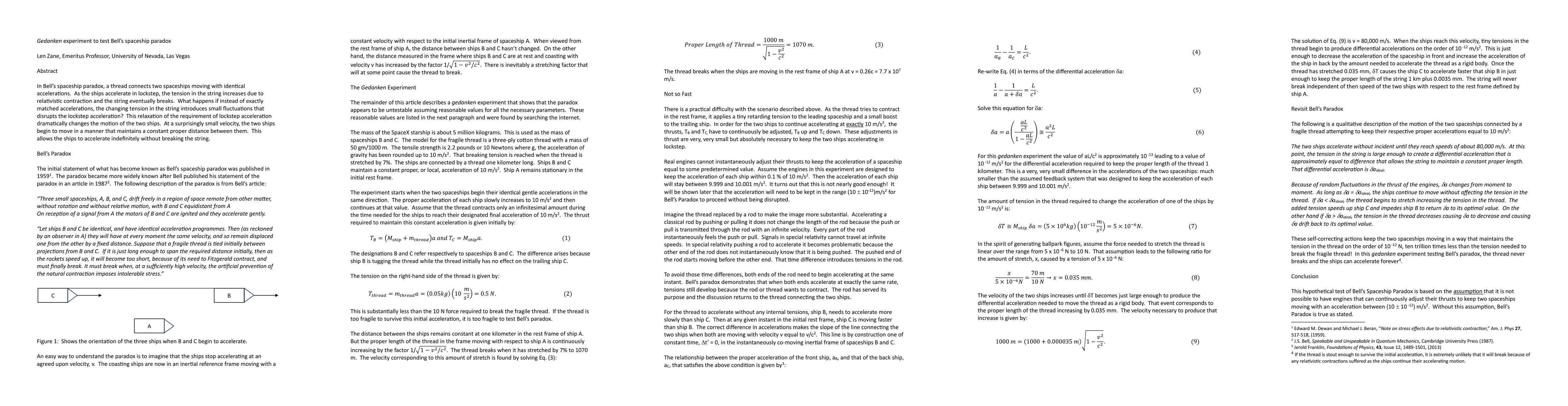 In Bell's spaceship paradox, a thread connects two spaceships moving with identical accelerations. As the ships accelerate in lockstep, the tension in the string increases due to the relativistic contraction and the string eventually breaks. What happens if instead of exactly matched accelerations, the changing tension in the string introduces small fluctuations that disrupt the lockstep acceleration? This relaxation of the requirement of lockstep acceleration dramatically changes the motion of the two ships. At a surprisingly small velocity, the two ships begin to move in a manner that maintains a constant proper distance between them. This allows the ships to accelerate indefinitely without breaking the string.