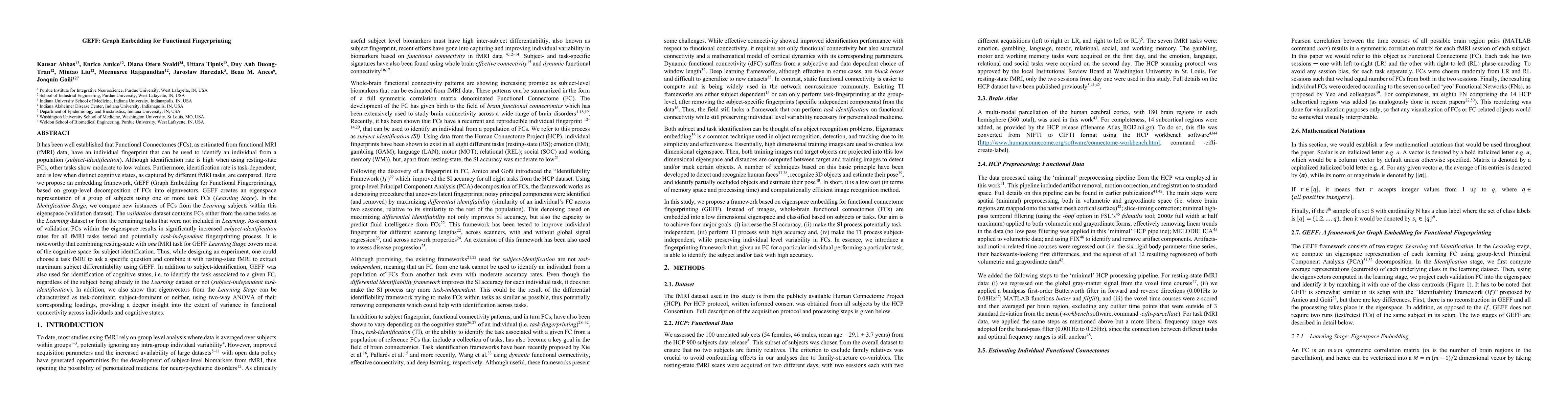 GEFF (Graph Embedding for Functional Fingerprinting) proposes a framework to enhance subject-identification using functional connectomes from fMRI data. It leverages group-level decomposition of FCs into eigenvectors to create an eigenspace representation, significantly improving identification rates across various fMRI tasks.