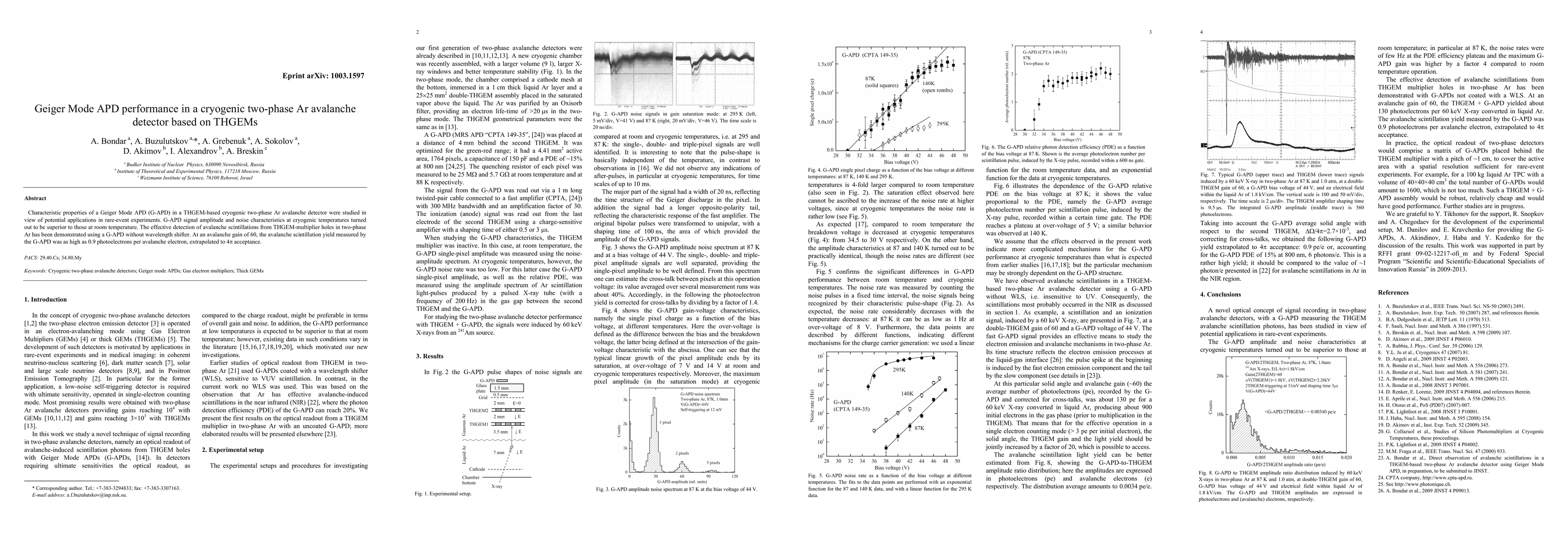 This study investigates the performance of a Geiger Mode APD in a cryogenic two-phase Ar avalanche detector utilizing THGEMs, finding superior signal amplitude and noise characteristics at cryogenic temperatures. The G-APD effectively detects avalanche scintillations with a yield of 0.9 photoelectrons per avalanche electron at an avalanche gain of 60.