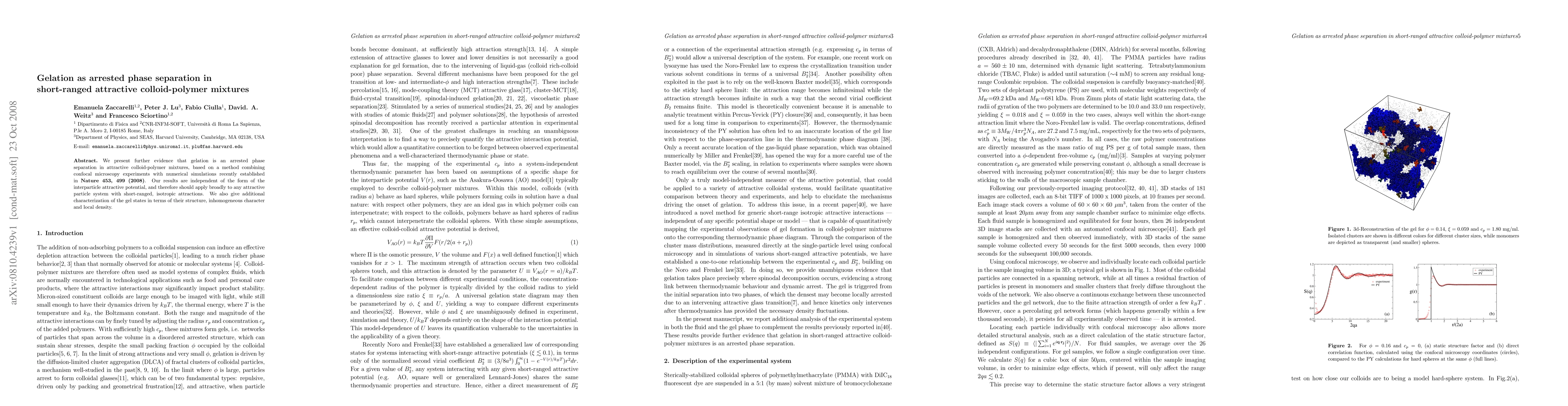 This research demonstrates that gelation in short-ranged attractive colloid-polymer mixtures is an arrested phase separation, supported by confocal microscopy and numerical simulations. The findings, applicable to various attractive particle systems, also characterize gel states by structure, inhomogeneity, and local density.