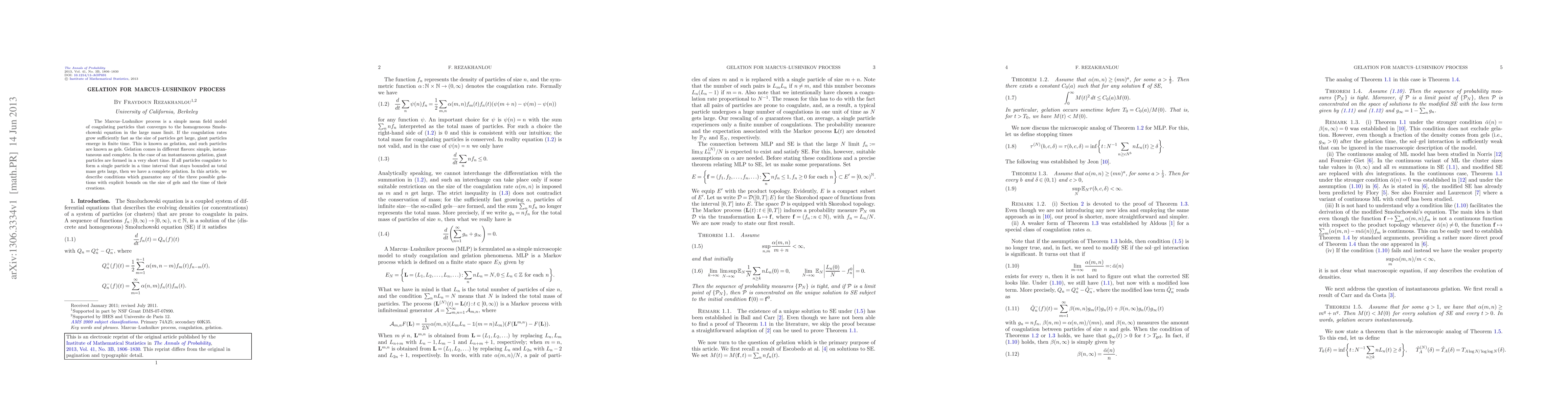 This paper investigates the Marcus-Lushnikov process, a model for coagulating particles, and identifies conditions for different types of gelation—simple, instantaneous, and complete—that lead to the formation of giant particles, providing explicit bounds on gel size and formation time.
