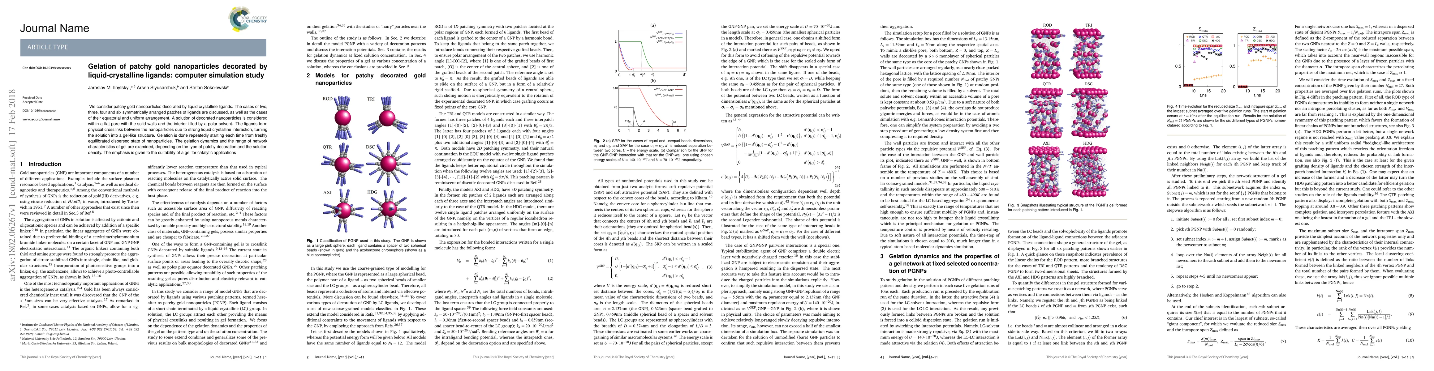 This paper investigates the gelation behavior of patchy gold nanoparticles with liquid-crystalline ligands through computer simulations. The study explores various patch arrangements and their impact on gelation dynamics, focusing on the potential of the resulting gels for catalytic applications.