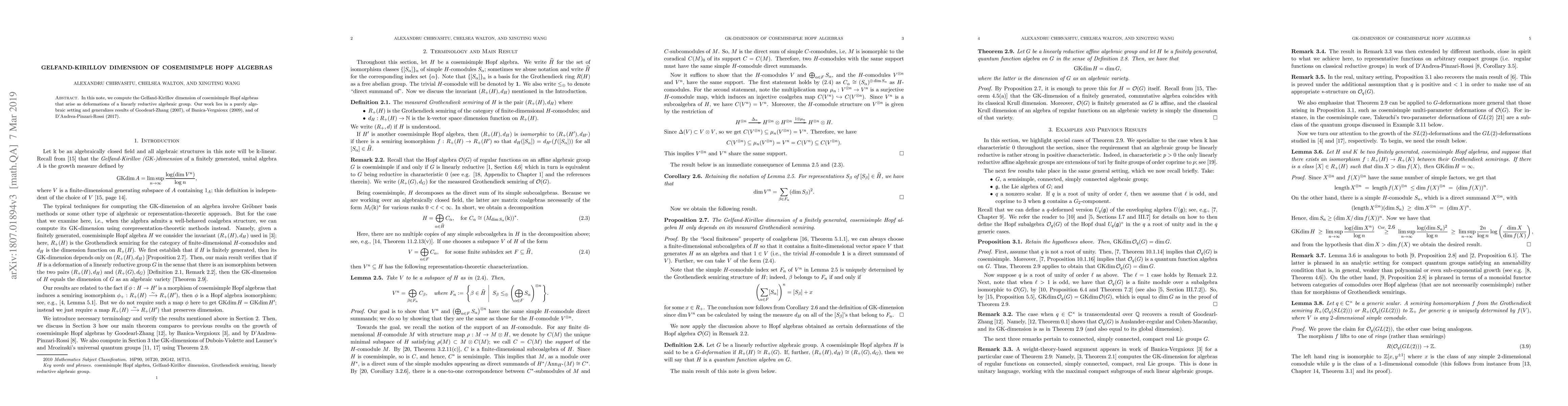 This paper computes the Gelfand-Kirillov dimension for cosemisimple Hopf algebras derived from deformations of linearly reductive algebraic groups, extending prior algebraic results from Goodearl-Zhang, Banica-Vergnioux, and D'Andrea-Pinzari-Rossi.