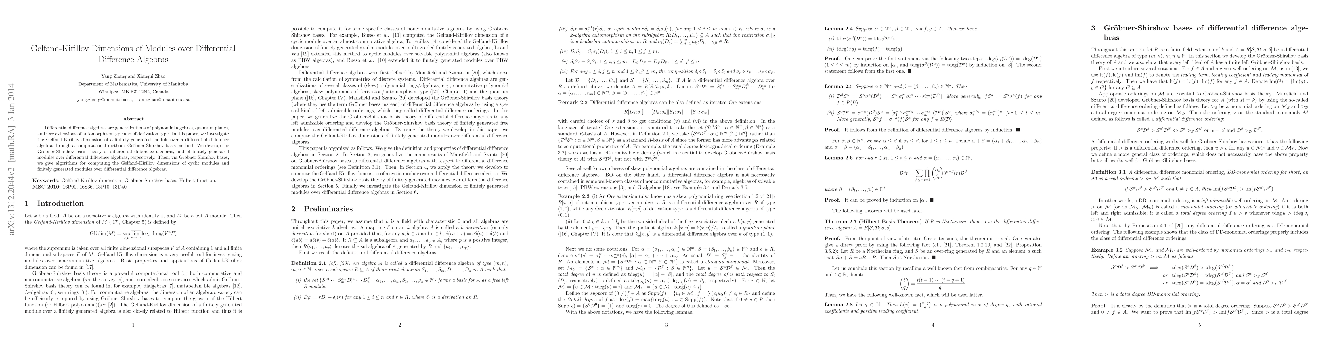 The paper develops Gröbner-Shirshov basis theory for differential difference algebras and finitely generated modules over them, using the Gröbner-Shirshov basis method and algorithms for computing Gelfand-Kirillov dimensions.