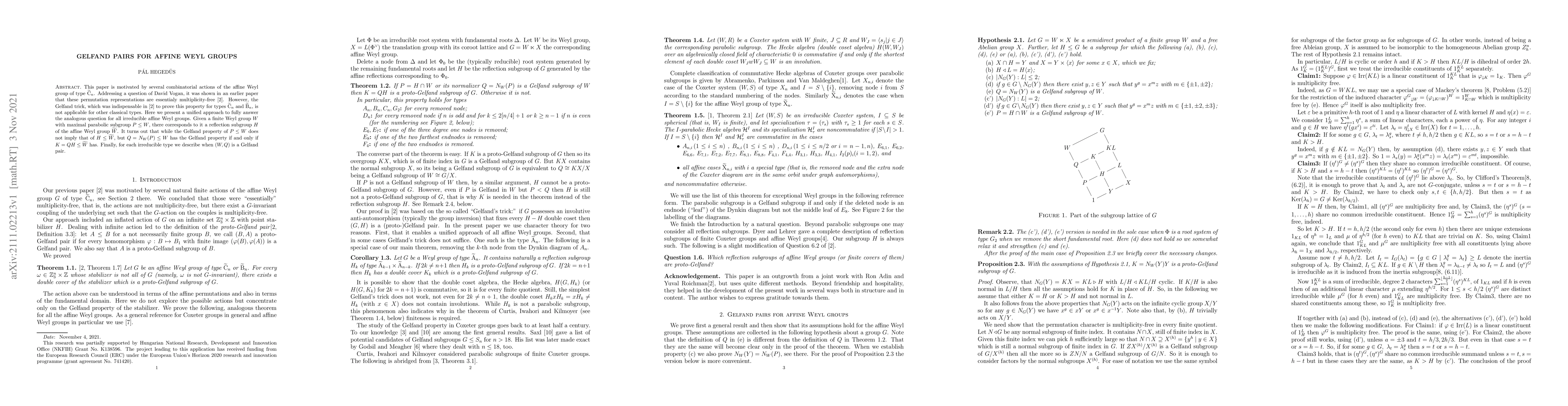 This paper is motivated by several combinatorial actions of the affine Weyl group of type $C_n$. Addressing a question of David Vogan, it was shown in an earlier paper that these permutation representations are essentialy multiplicity-free~\cite{arXiv:2009.13880}. However, the Gelfand trick, which was indispensable in~\cite{arXiv:2009.13880} to prove this property for types $C_n$ and $B_n$, is not applicable for other classical types. Here we present a unified approach to fully answer the analogous question for all irreducible affine Weyl groups. Given a finite Weyl group $W$ with maximal parabolic subgroup $P\leq W$, there corresponds to it a reflection subgroup $H$ of the affine Weyl group $\widetilde W$. It turns out that while the Gelfand property of $P\leq W$ does not imply that of $H\leq \widetilde{W}$, but $Q=N_W(P)\leq W$ has the Gelfand property if and only if $K=QH\leq \widetilde{W}$ has. Finally, for each irreducible type we describe when $(W,Q)$ is a Gelfand pair.
