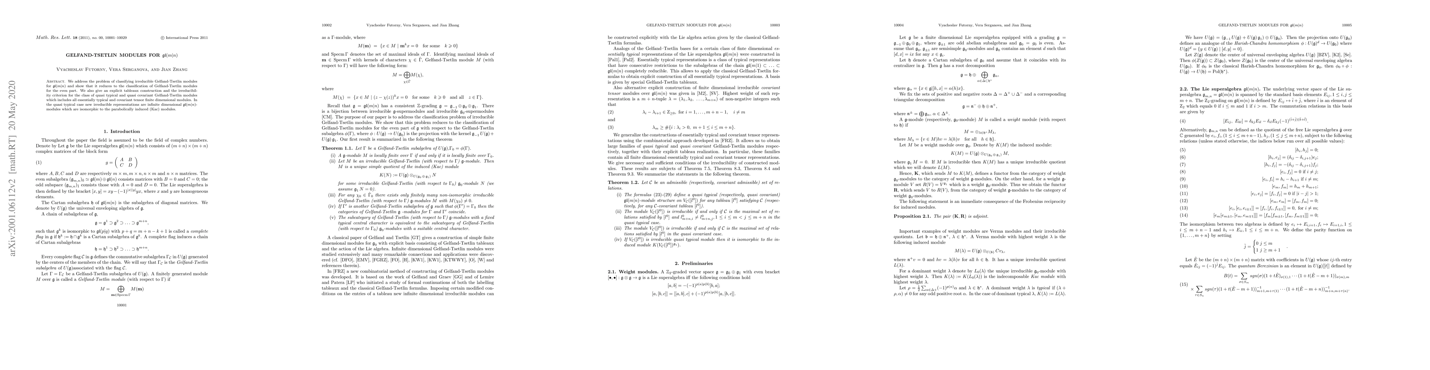 We address the problem of classifying of irreducible Gelfand-Tsetlin modules for gl(m|n) and show that it reduces to the classification of Gelfand-Tsetlin modules for the even part. We also give an explicit tableaux construction and the irreducibility criterion for the class of quasi typical and quasi covariant Gelfand-Tsetlin modules which includes all essentially typical and covariant tensor finite dimensional modules. In the quasi typical case new irreducible representations are infinite dimensional gl(m|n)-modules which are isomorphic to the parabolically induced (Kac) modules.