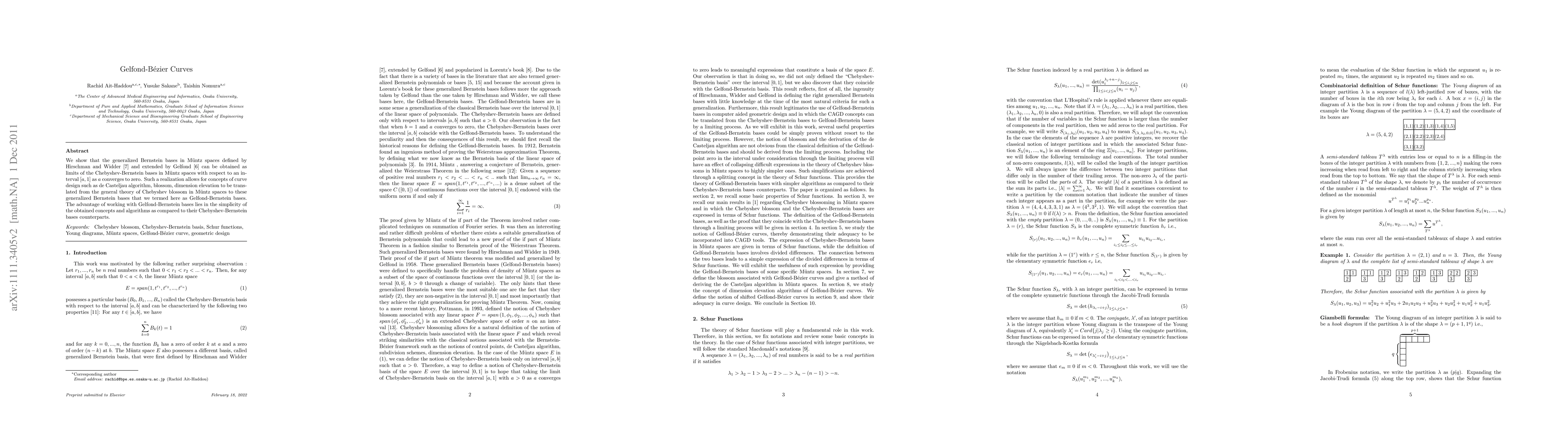 This paper demonstrates that Gelfond-Bezier curves, derived from generalized Bernstein bases, emerge as limits of Chebyshev-Bernstein bases in Muntz spaces. This transition facilitates the application of curve design concepts like the de Casteljau algorithm to these new bases, offering simpler algorithms compared to their Chebyshev counterparts.