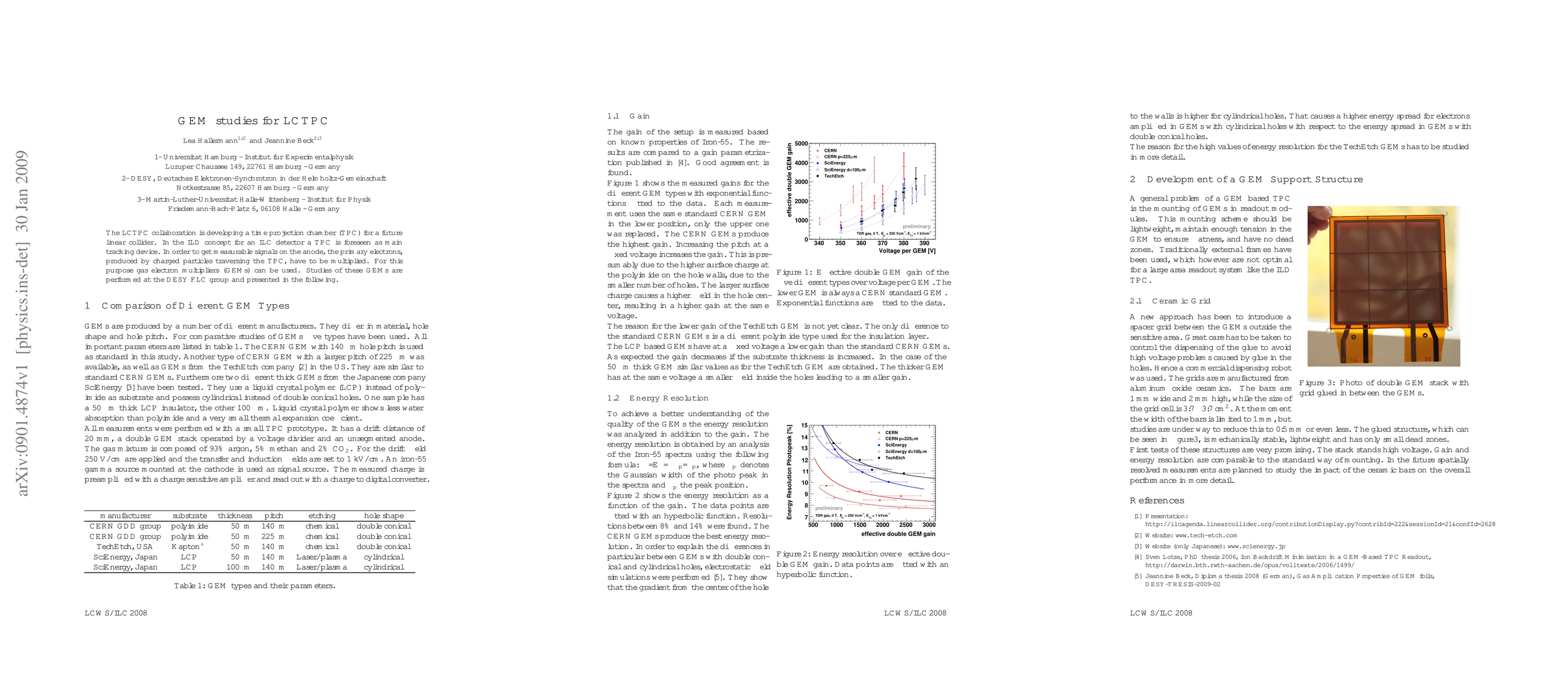 The LCTPC collaboration is developing a time projection chamber (TPC) for a future linear collider. In the ILD concept for an ILC detector a TPC is foreseen as main tracking device. In order to get measurable signals on the anode, the primary electrons, produced by charged particles traversing the TPC, have to be multiplied. For this purpose gas electron multipliers (GEMs) can be used. Studies of these GEMs are performed at the DESY FLC group and presented in the following.