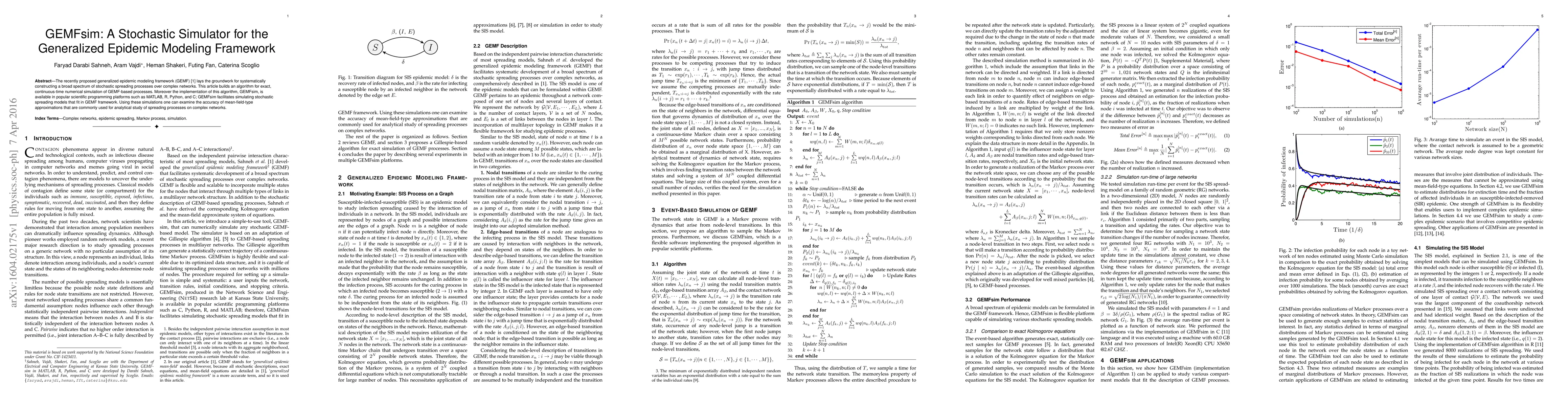 Title: GEMFsim: A Stochastic Simulator for the Generalized Epidemic Modeling Framework Summary: GEMFsim is an algorithm for simulating GEMF-based stochastic processes over complex networks, implemented in multiple programming languages, allowing researchers to evaluate mean-field approximations for spreading processes.