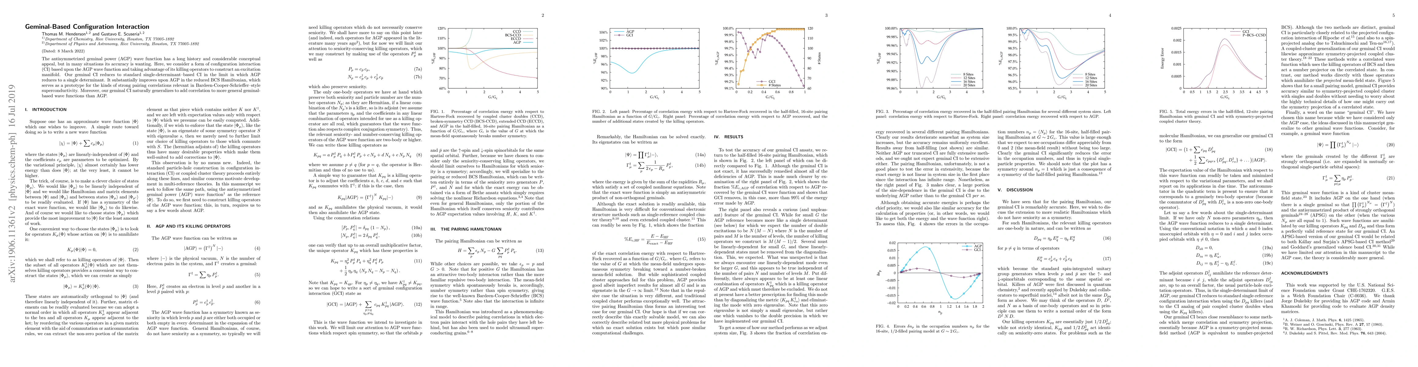 The antisymmetrized geminal power (AGP) wave function has a long history and considerable conceptual appeal, but in many situations its accuracy is wanting. Here, we consider a form of configuration interaction (CI) based upon the AGP wave function and taking advantage of its killing operators to construct an excitation manifold. Our geminal CI reduces to standard single-determinant--based CI in the limit in which AGP reduces to a single determinant. It substantially improves upon AGP in the reduced BCS Hamiltonian, which serves as a prototype for the kinds of strong pairing correlations relevant in Bardeen-Cooper-Schrieffer--style superconductivity. Moreover, our geminal CI naturally generalizes to add correlation to more general geminal-based wave functions than AGP.