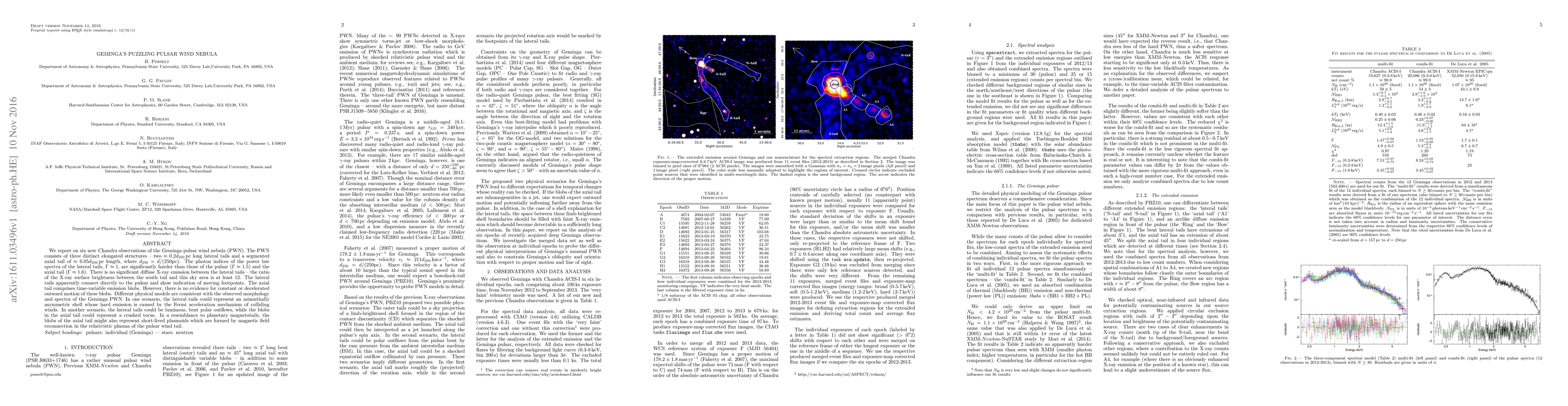 We report on six new Chandra observations of the Geminga pulsar wind nebula (PWN). The PWN consists of three distinct elongated structures - two $\approx 0.2 d_{250}$ pc long lateral tails and a segmented axial tail of $\approx 0.05 d_{250}$ pc length, where $d_{250}=d/(250 {\rm pc})$. The photon indices of the power law spectra of the lateral tails, $\Gamma \approx 1$, are significantly harder than those of the pulsar ($\Gamma \approx 1.5$) and the axial tail ($\Gamma \approx 1.6$). There is no significant diffuse X-ray emission between the lateral tails -- the ratio of the X-ray surface brightness between the south tail and this sky area is at least 12. The lateral tails apparently connect directly to the pulsar and show indication of moving footpoints. The axial tail comprises time-variable emission blobs. However, there is no evidence for constant or decelerated outward motion of these blobs. Different physical models are consistent with the observed morphology and spectra of the Geminga PWN. In one scenario, the lateral tails could represent an azimuthally asymmetric shell whose hard emission is caused by the Fermi acceleration mechanism of colliding winds. In another scenario, the lateral tails could be luminous, bent polar outflows, while the blobs in the axial tail could represent a crushed torus. In a resemblance to planetary magnetotails, the blobs of the axial tail might also represent short-lived plasmoids which are formed by magnetic field reconnection in the relativistic plasma of the pulsar wind tail.