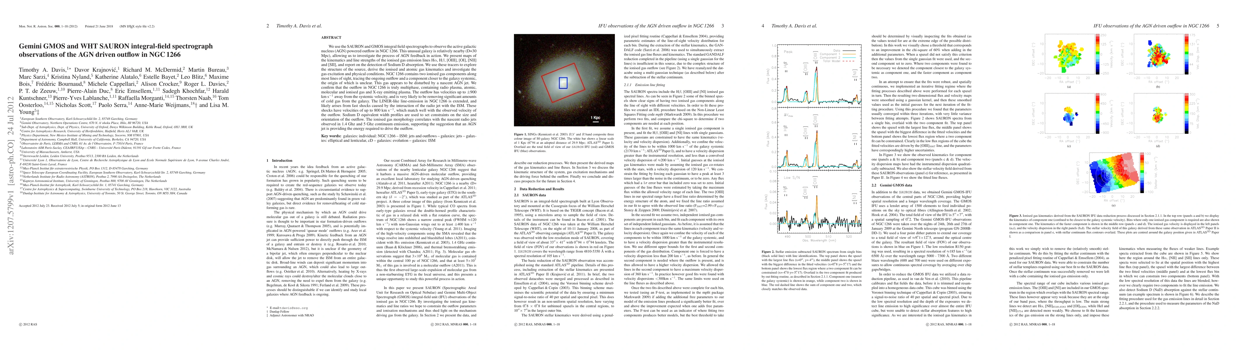 This study uses SAURON and GMOS integral field spectrographs to analyze the AGN-driven outflow in NGC 1266, revealing a multiphase outflow with gas velocities up to ±900 km/s, likely removing significant cold gas from the galaxy. The outflow's ionised gas morphology correlates with nascent radio jets, suggesting AGN jet activity drives the outflow.