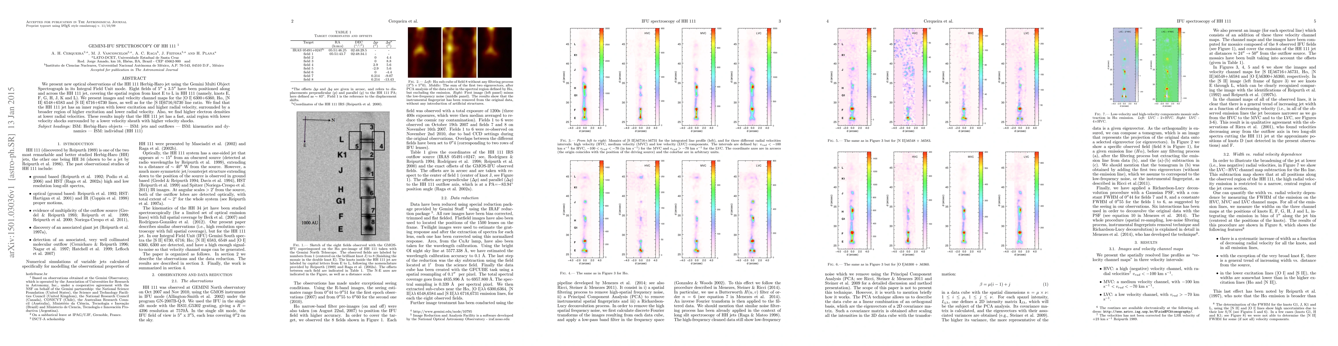 The research utilizes Gemini-IFU spectroscopy to analyze HH 111, a Herbig-Haro jet. It reveals a two-region structure: a fast, axial region with lower velocity shocks, and a broader, lower velocity sheath with higher velocity shocks. This is inferred from variations in excitation, radial velocity, and electron density along the jet from knots E to L.
