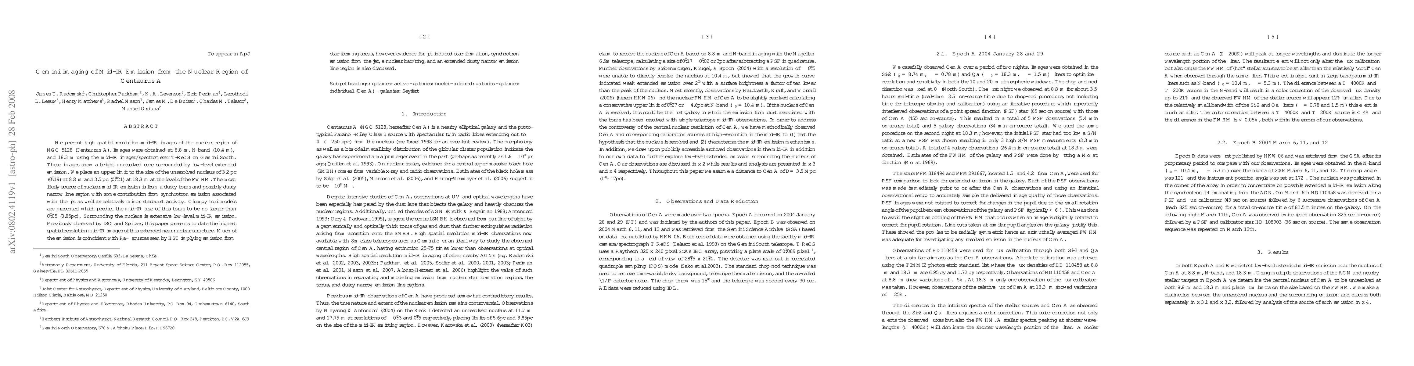 This study presents high-resolution mid-IR images of the nuclear region of Centaurus A using Gemini South, revealing a bright unresolved core surrounded by extended emission. The core is likely powered by a dusty torus, with additional contributions from synchrotron emission and minor starburst activity.