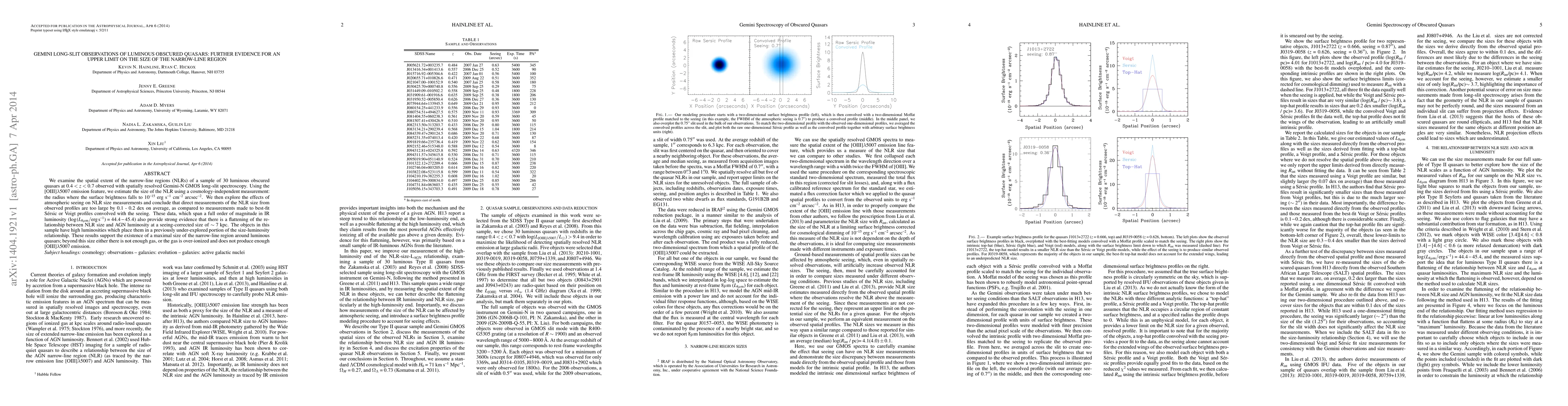We examine the spatial extent of the narrow-line regions (NLRs) of a sample of 30 luminous obscured quasars at $0.4 < z < 0.7$ observed with spatially resolved Gemini-N GMOS long-slit spectroscopy. Using the [OIII]$\lambda5007$ emission feature, we estimate the size of the NLR using a cosmology-independent measurement: the radius where the surface brightness falls to 10$^{-15}$ erg s$^{-1}$ cm$^{-2}$ arcsec$^{-2}$. We then explore the effects of atmospheric seeing on NLR size measurements and conclude that direct measurements of the NLR size from observed profiles are too large by 0.1 - 0.2 dex on average, as compared to measurements made to best-fit S\'{e}rsic or Voigt profiles convolved with the seeing. These data, which span a full order of magnitude in IR luminosity ($\log{(L_{8 \mu \mathrm{m}} / \mathrm{erg\, s}^{-1})} = 44.4 - 45.4$) also provide strong evidence that there is a flattening of the relationship between NLR size and AGN luminosity at a seeing-corrected size of $\sim 7$ kpc. The objects in this sample have high luminosities which place them in a previously under-explored portion of the size-luminosity relationship. These results support the existence of a maximal size of the narrow-line region around luminous quasars; beyond this size either there is not enough gas, or the gas is over-ionized and does not produce enough [OIII]$\lambda5007$ emission.