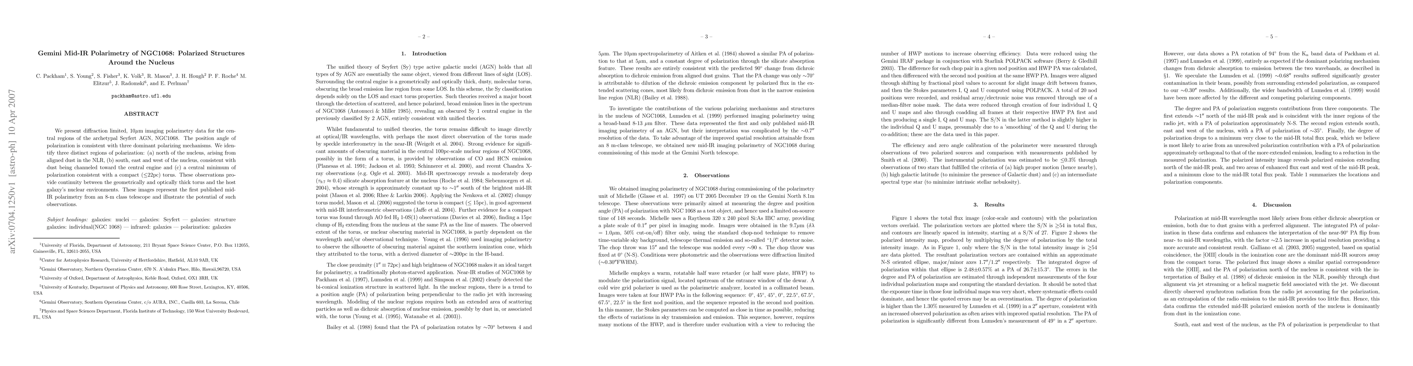 This paper presents mid-IR polarimetry data for NGC1068, revealing three polarized regions: aligned dust in the north, dust channeled towards the nucleus in the south, east, and west, and a central polarization minimum. These findings support the continuity between the torus and the galaxy's nuclear environment.