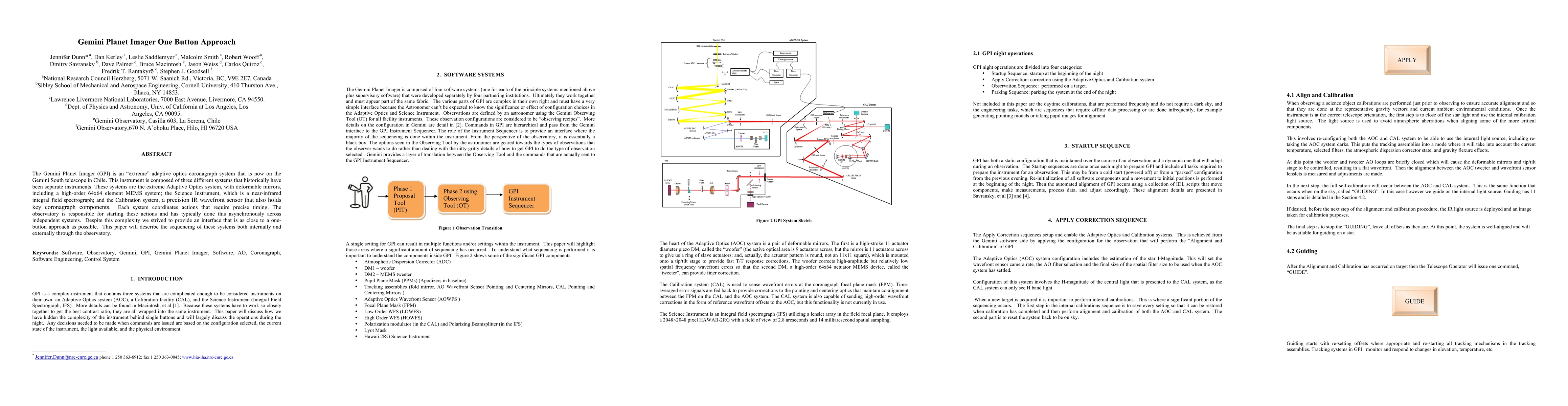 The Gemini Planet Imager (GPI) integrates three complex systems into a single interface for streamlined operation. The paper details a one-button approach to coordinate the extreme adaptive optics, science instrument, and calibration system sequencing, enhancing user-friendliness despite the instrument's complexity.