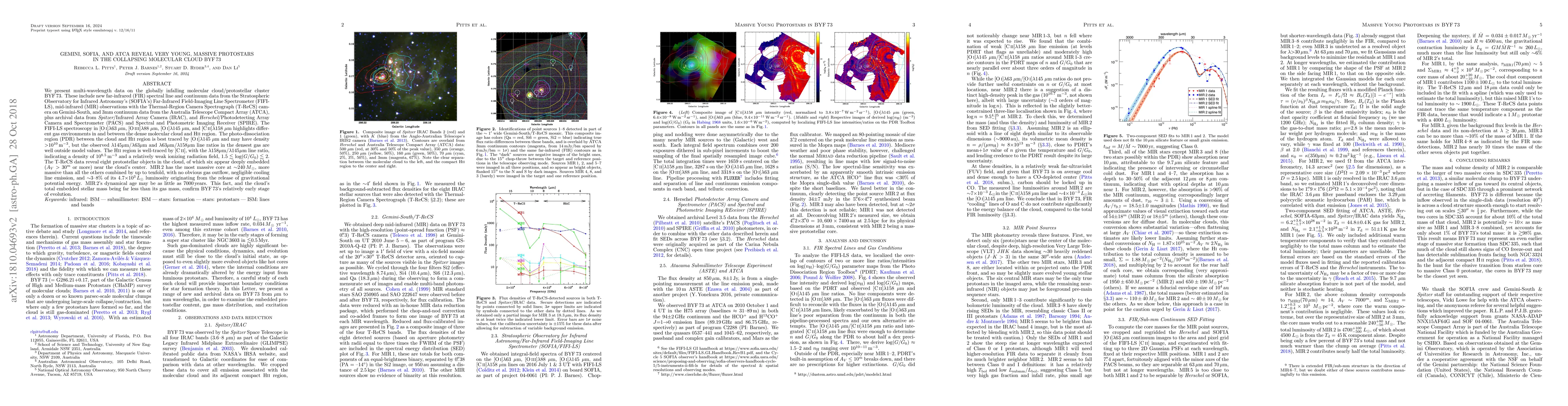 We present multi-wavelength data on the globally infalling molecular cloud/protostellar cluster BYF 73. These include new far-IR spectral line and continuum data from SOFIA's Far Infrared Field-Imaging Line Spectrometer (FIFI-LS), mid-infrared (MIR) observations with the Thermal-Region Camera Spectrograph (T-ReCS) on Gemini-South, and 3 mm continuum data from the Australia Telescope Compact Array (ATCA), plus archival data from Spitzer/IRAC, and Herschel/PACS and SPIRE. The FIFI-LS spectroscopy in [OI]$\lambda63 \mu$m, [OIII]$\lambda88 \mu$m, [OI]$\lambda145 \mu$m, and [CII]$\lambda158 \mu$m highlights different gas environments in and between the dense molecular cloud and HII region. The photo-dissociation region (PDR) between the cloud and HII region is best traced by [OI]$\lambda145 \mu$m and may have density $>$10$^{10}$ m$^{-3}$, but the observed $\lambda145\mu$m/$\lambda63\mu$m and $\lambda63\mu$m/$\lambda158\mu$m line ratios in the densest gas are well outside model values. The HII region is well-traced by [CII], with the $\lambda158\mu$m/$\lambda145\mu$m line ratio indicating a density of 10$^{8.5}$ m$^{-3}$ and a relatively weak ionizing radiation field, 1.5 $\lesssim$ log$(G/G_0)\lesssim$ 2. The T-ReCS data reveal eight protostellar objects in the cloud, of which six appear deeply embedded ($A_V$ $>$ 30$^m$ or more) near the cloud's center. MIR 2 has the most massive core at $\sim$240 M$_{\odot}$, more massive than all the others combined by up to tenfold, with no obvious gas outflow, negligible cooling line emission, and $\sim3-8$% of its 4.7$\times$10$^3$ L$_{\odot}$ luminosity originating from the release of gravitational potential energy. MIR 2's dynamical age may be as little as 7000 yr. This fact, and the cloud's total embedded stellar mass being far less than its gas mass, confirm BYF 73's relatively early stage of evolution.