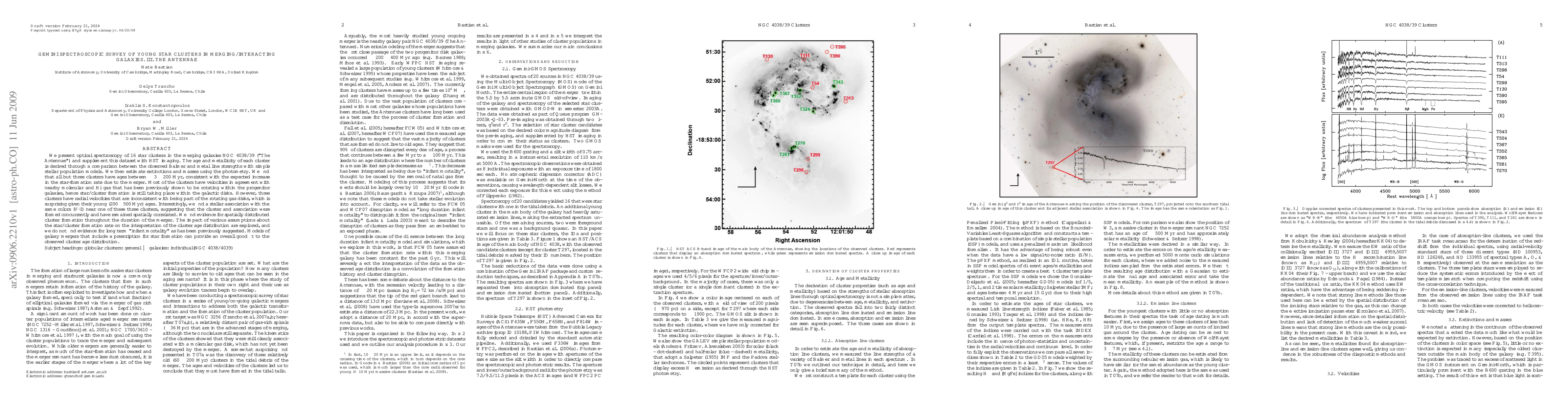 This study uses optical spectroscopy and HST imaging to analyze 16 star clusters in the merging galaxies NGC 4038/39 ("The Antennae"), finding most clusters formed within the last 200 Myr due to increased star-formation rates. Three young clusters, however, have velocities inconsistent with the rotating gas disks, suggesting alternative formation mechanisms.