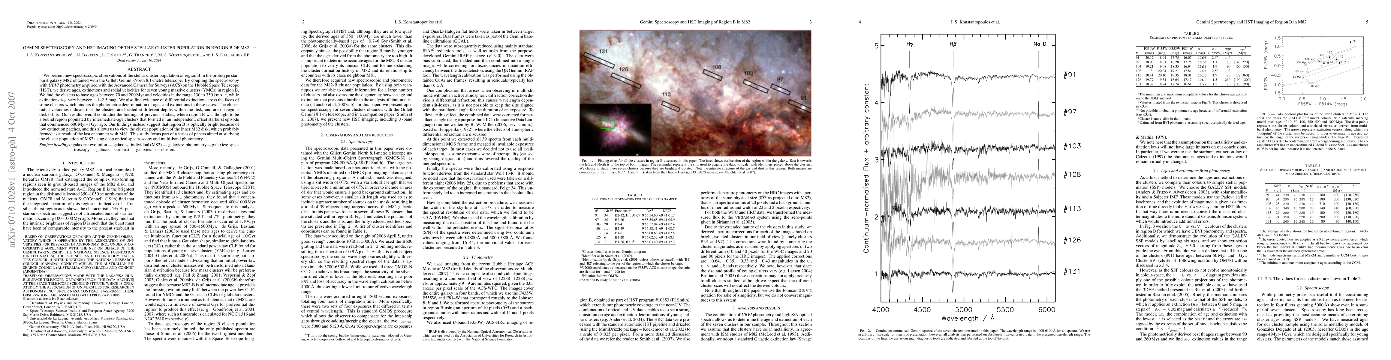 This study uses Gemini spectroscopy and HST imaging to analyze young massive clusters in M82's region B, finding clusters with ages 70-200 Myr and varying extinctions. The results suggest region B's optical brightness is due to low extinction patches, indicating clusters formed from the last M82-M81 encounter, contradicting previous studies of an older, independent starburst.