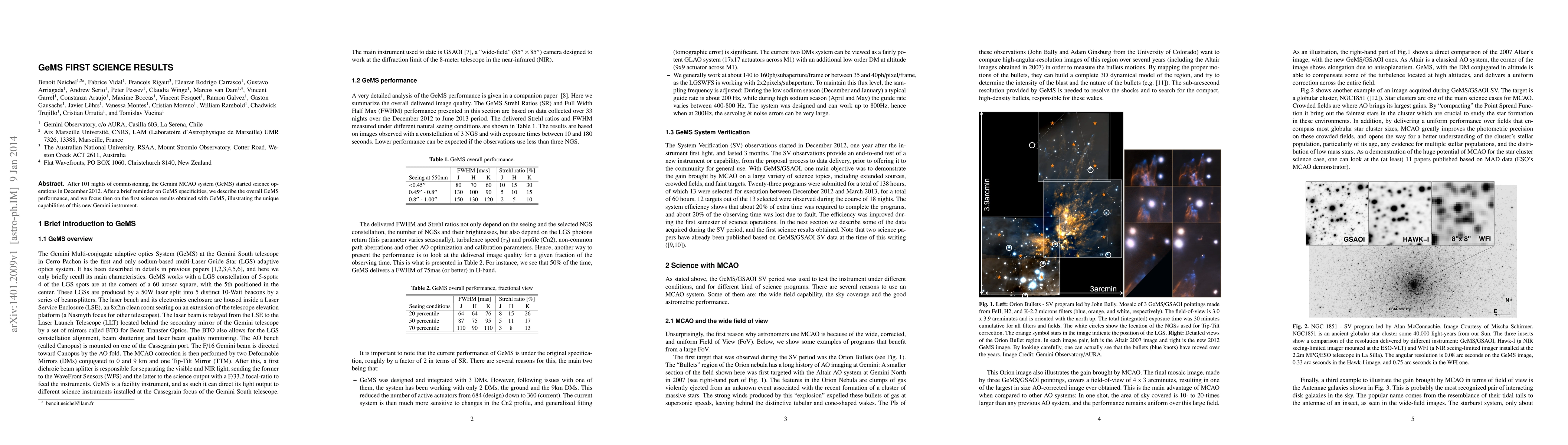 After 101 nights of commissioning, the Gemini MCAO system (GeMS) started science operations in December 2012. After a brief reminder on GeMS specificities, we describe the overall GeMS performance, and we focus then on the first science results obtained with GeMS, illustrating the unique capabilities of this new Gemini instrument.