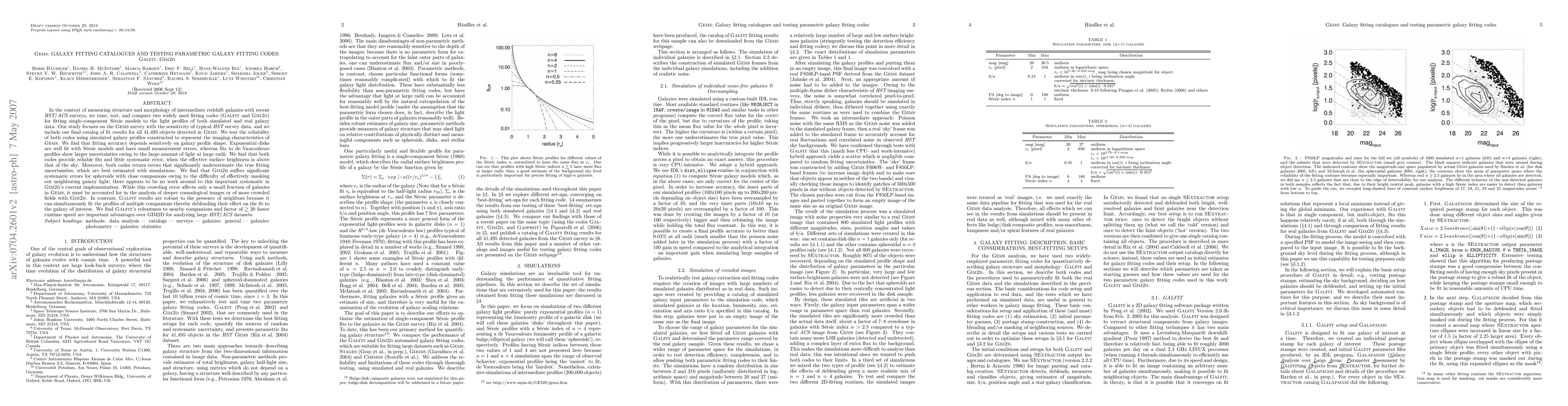 In the context of measuring structure and morphology of intermediate redshift galaxies with recent HST/ACS surveys, we tune, test, and compare two widely used fitting codes (GALFIT and GIM2D) for fitting single-component Sersic models to the light profiles of both simulated and real galaxy data. We find that fitting accuracy depends sensitively on galaxy profile shape. Exponential disks are well fit with Sersic models and have small measurement errors, whereas fits to de Vaucouleurs profiles show larger uncertainties owing to the large amount of light at large radii. We find that both codes provide reliable fits and little systematic error, when the effective surface brightness is above that of the sky. Moreover, both codes return errors that significantly underestimate the true fitting uncertainties, which are best estimated with simulations. We find that GIM2D suffers significant systematic errors for spheroids with close companions owing to the difficulty of effectively masking out neighboring galaxy light; there appears to be no work around to this important systematic in GIM2D's current implementation. While this crowding error affects only a small fraction of galaxies in GEMS, it must be accounted for in the analysis of deeper cosmological images or of more crowded fields with GIM2D. In contrast, GALFIT results are robust to the presence of neighbors because it can simultaneously fit the profiles of multiple companions thereby deblending their effect on the fit to the galaxy of interest. We find GALFIT's robustness to nearby companions and factor of >~20 faster runtime speed are important advantages over GIM2D for analyzing large HST/ACS datasets. Finally we include our final catalog of fit results for all 41,495 objects detected in GEMS.