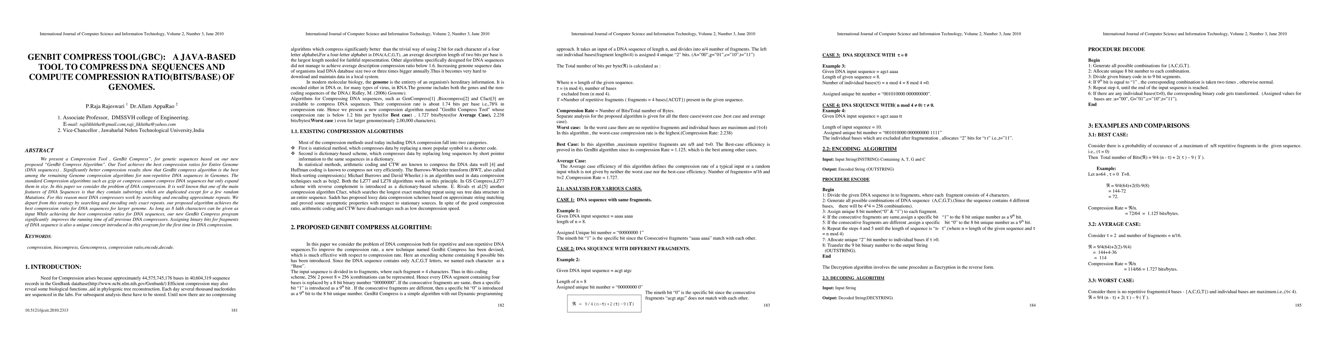 The GenBit Compress Tool, based on a novel algorithm, achieves superior compression ratios for DNA sequences compared to existing methods, focusing on exact repeats rather than approximate ones. This Java-based tool significantly improves running time and introduces a unique binary bit assignment for DNA fragments.