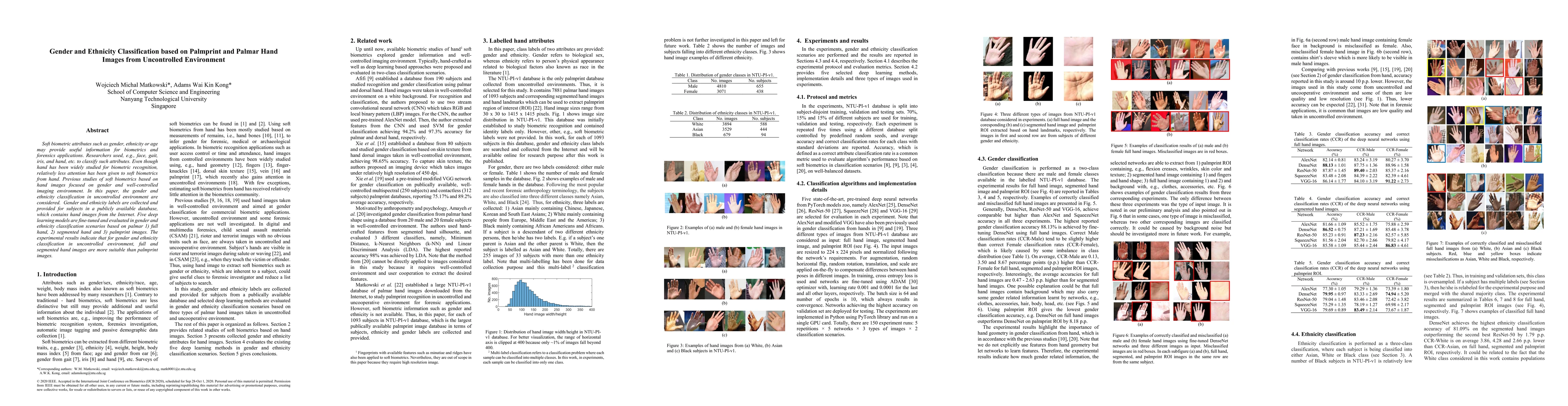 This paper explores gender and ethnicity classification using palmprint and palmar hand images from uncontrolled environments. Five deep learning models are evaluated, showing that full and segmented hand images are more effective than palmprint images for this task.