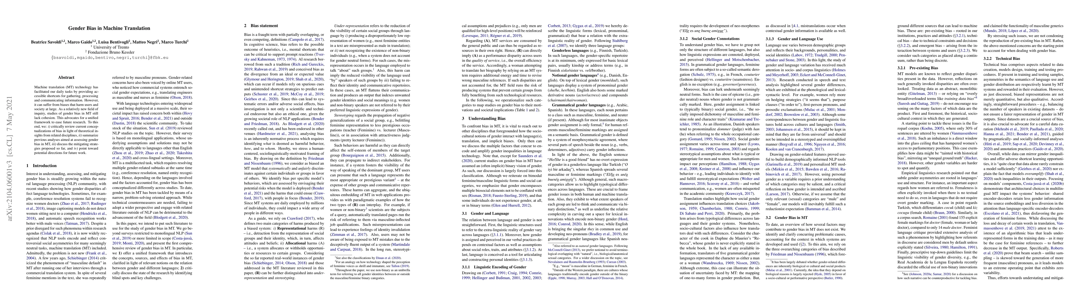Machine translation (MT) technology has facilitated our daily tasks by providing accessible shortcuts for gathering, elaborating and communicating information. However, it can suffer from biases that harm users and society at large. As a relatively new field of inquiry, gender bias in MT still lacks internal cohesion, which advocates for a unified framework to ease future research. To this end, we: i) critically review current conceptualizations of bias in light of theoretical insights from related disciplines, ii) summarize previous analyses aimed at assessing gender bias in MT, iii) discuss the mitigating strategies proposed so far, and iv) point toward potential directions for future work.