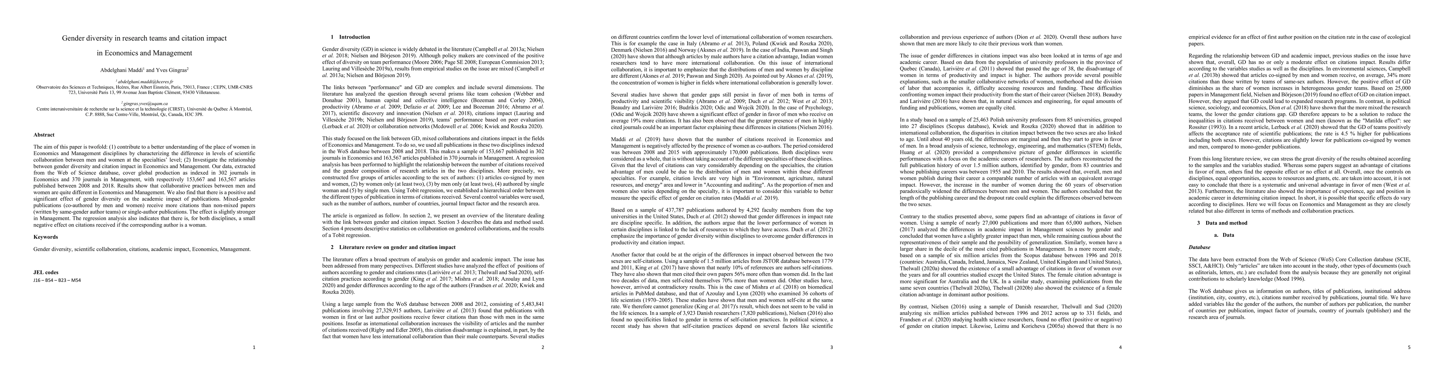 This paper examines gender collaboration differences in Economics and Management and finds a positive correlation between gender-diverse research teams and higher citation impact, with mixed-gender publications receiving more citations than same-gender or single-author papers, especially in Management.