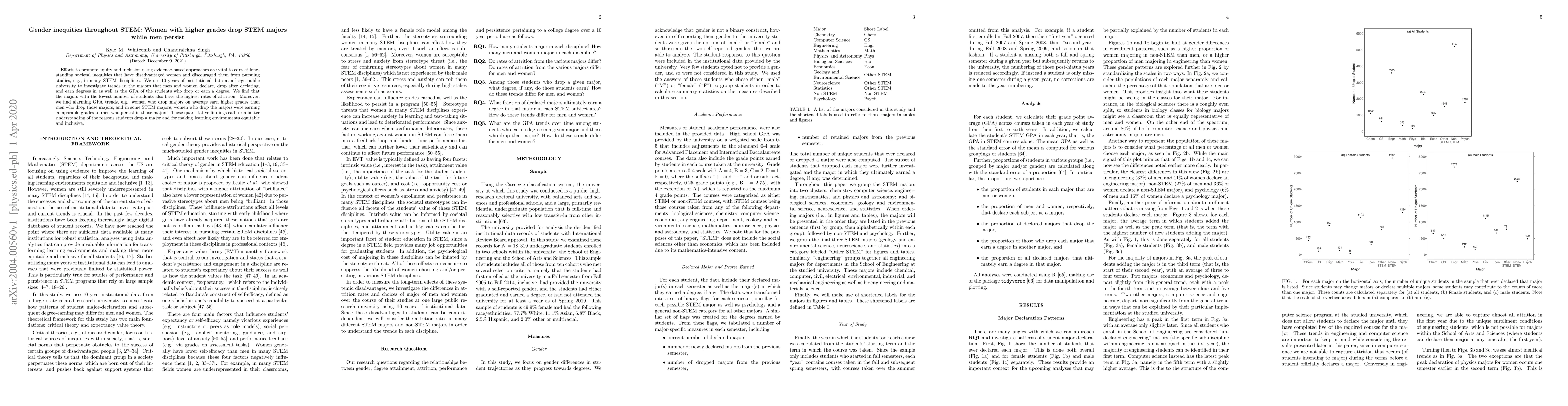 This study examines gender disparities in STEM majors using a decade of university data, revealing that women with higher grades are more likely to drop out compared to men, highlighting the need for equitable learning environments to address these trends.