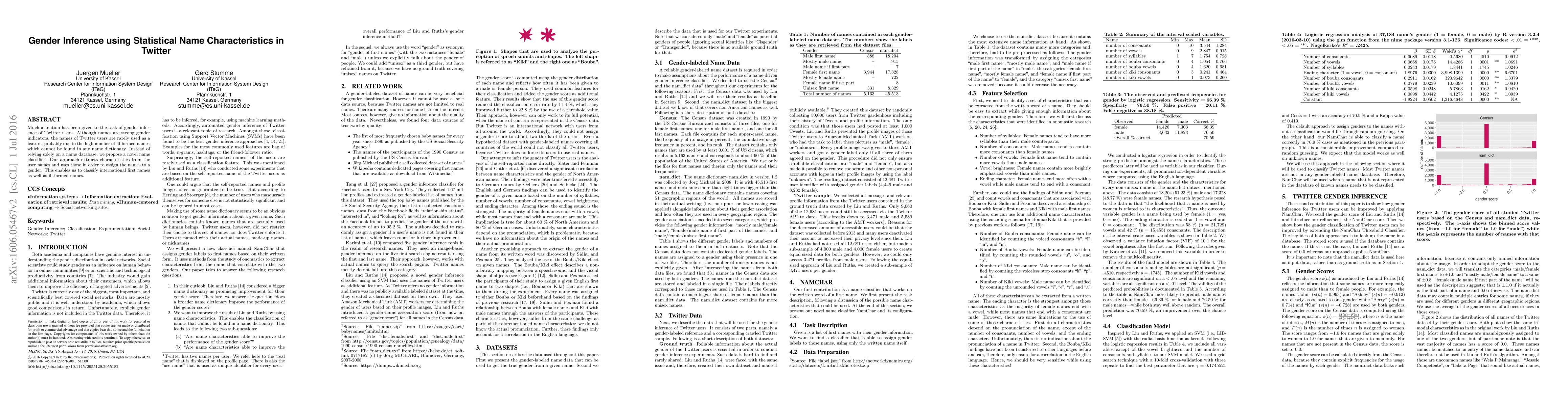 This paper proposes a novel name classifier for gender inference on Twitter that extracts statistical characteristics from user names, enabling the classification of both international and ill-formed names without relying on traditional name dictionaries. The method aims to improve gender inference accuracy by addressing the limitations of existing approaches.