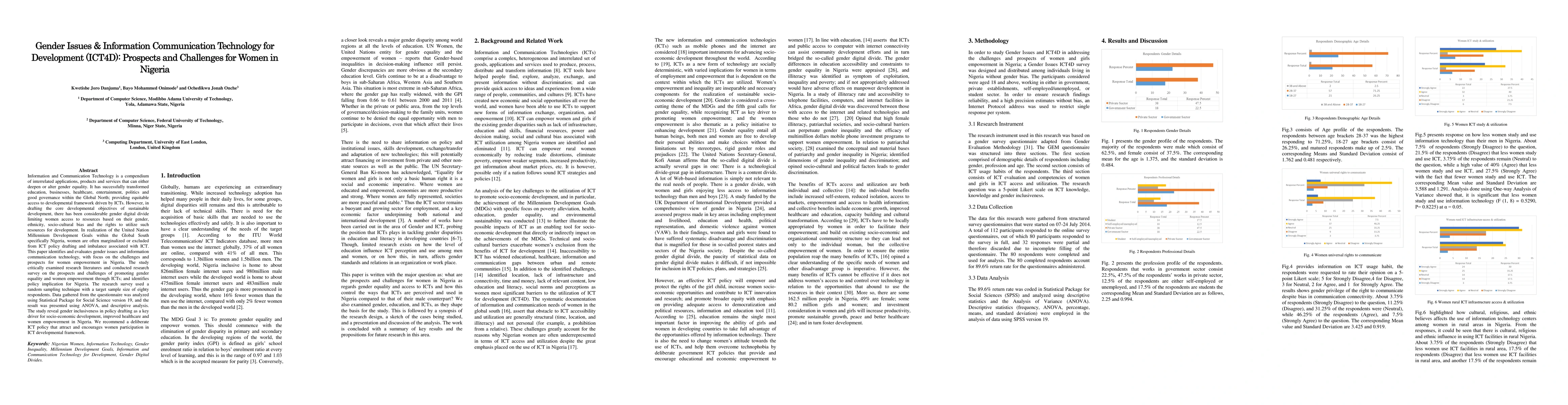 This paper examines gender issues in Information and Communication Technology (ICT) for development in Nigeria, highlighting the challenges and opportunities for women's empowerment. It emphasizes the need for gender inclusiveness in ICT policy drafting to promote socio-economic development and women empowerment, recommending a deliberate policy to encourage women's participation in ICT.