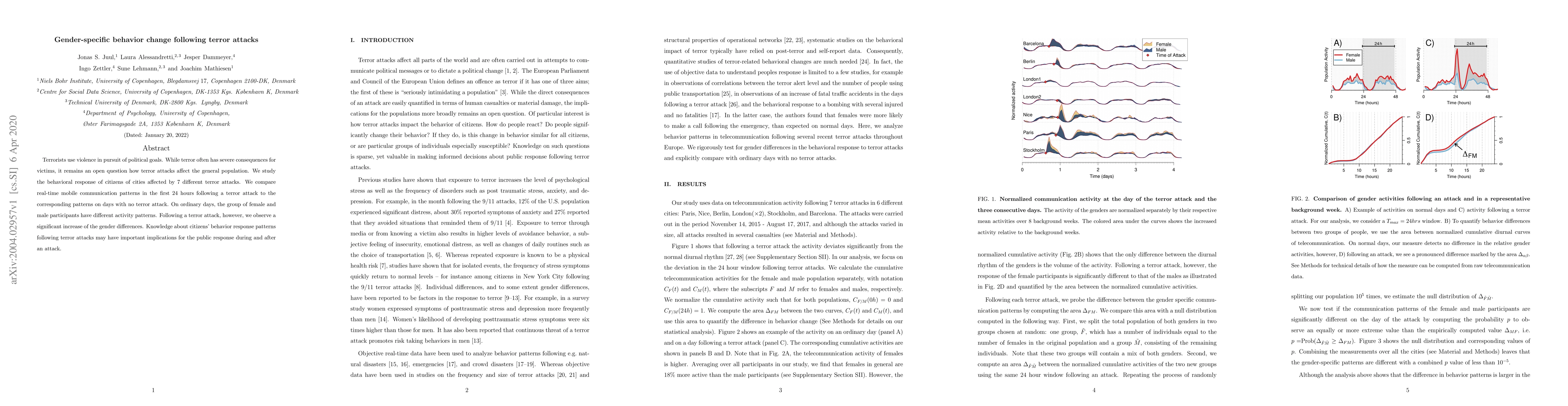 A study analyzing mobile communication patterns found that terror attacks create significant gender-specific changes in behavior among citizens, which could inform public response strategies.