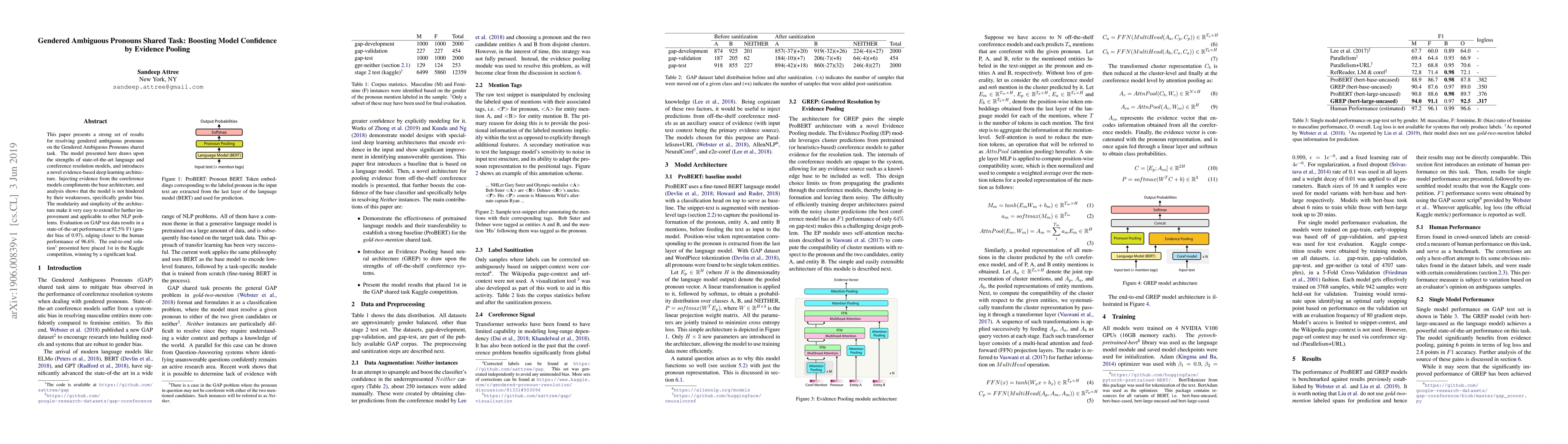 This paper introduces a deep learning model for resolving gendered ambiguous pronouns, achieving state-of-the-art performance with 92.5% F1 score by pooling evidence from coreference resolution models, while minimizing gender bias. The modular architecture won the Kaggle competition and is available for further improvements.