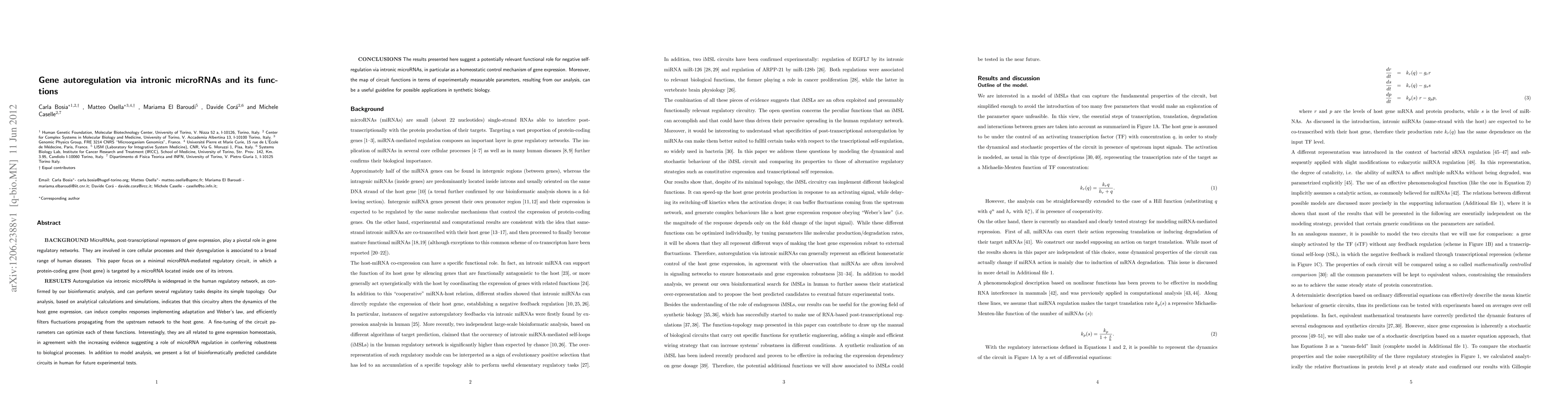 Background: MicroRNAs, post-transcriptional repressors of gene expression, play a pivotal role in gene regulatory networks. They are involved in core cellular processes and their dysregulation is associated to a broad range of human diseases. This paper focus on a minimal microRNA-mediated regulatory circuit, in which a protein-coding gene (host gene) is targeted by a microRNA located inside one of its introns. Results: Autoregulation via intronic microRNAs is widespread in the human regulatory network, as confirmed by our bioinformatic analysis, and can perform several regulatory tasks despite its simple topology. Our analysis, based on analytical calculations and simulations, indicates that this circuitry alters the dynamics of the host gene expression, can induce complex responses implementing adaptation and Weber's law, and efficiently filters fluctuations propagating from the upstream network to the host gene. A fine-tuning of the circuit parameters can optimize each of these functions. Interestingly, they are all related to gene expression homeostasis, in agreement with the increasing evidence suggesting a role of microRNA regulation in conferring robustness to biological processes. In addition to model analysis, we present a list of bioinformatically predicted candidate circuits in human for future experimental tests. Conclusions: The results presented here suggest a potentially relevant functional role for negative self-regulation via intronic microRNAs, in particular as a homeostatic control mechanism of gene expression. Moreover, the map of circuit functions in terms of experimentally measurable parameters, resulting from our analysis, can be a useful guideline for possible applications in synthetic biology.