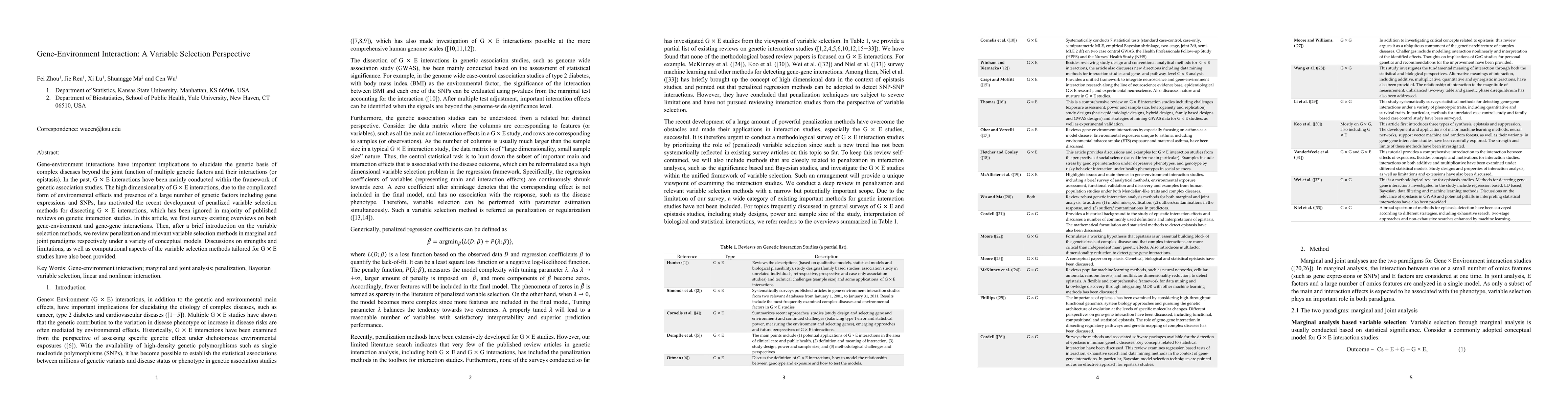 This paper surveys gene-environment interaction studies, focusing on the use of penalized variable selection methods to address the high dimensionality of such interactions. It reviews existing literature on gene-gene and gene-environment interactions, discusses various variable selection techniques, and evaluates their strengths, limitations, and computational aspects.